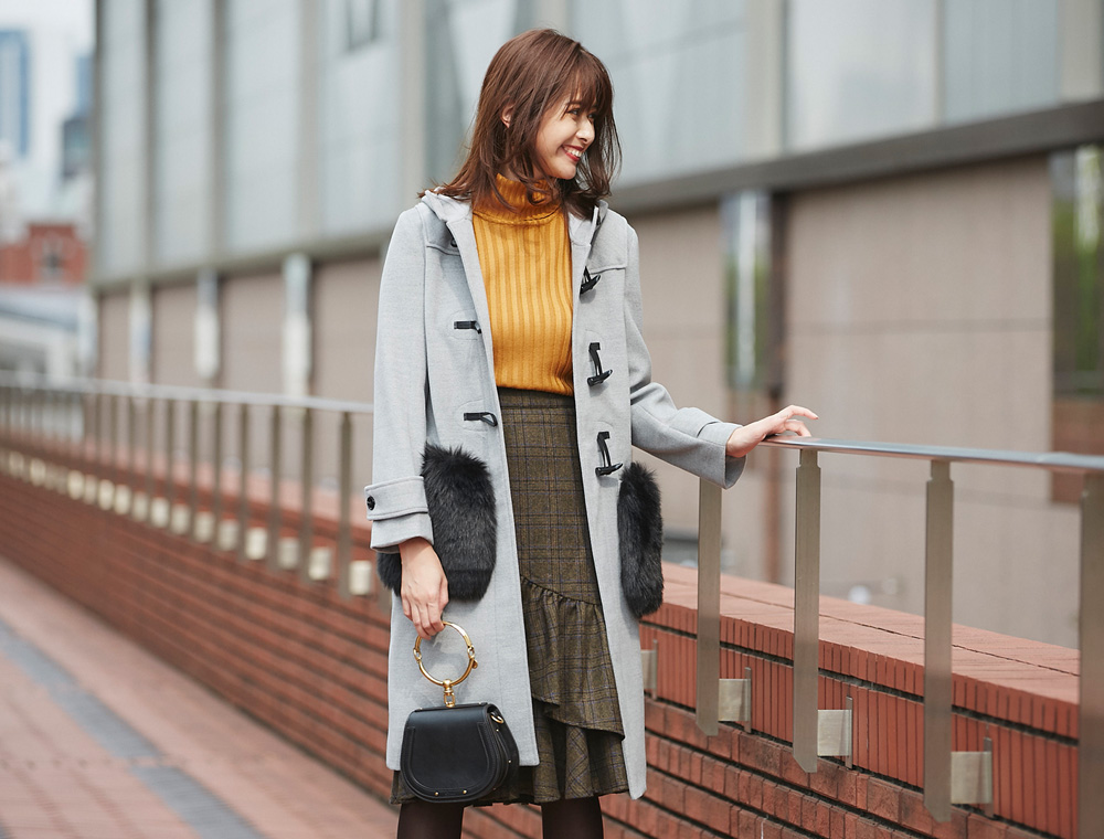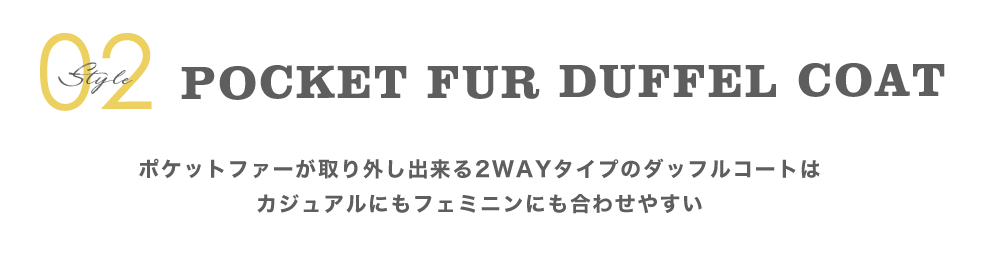 ポケットファーダッフルコート¥15,000+tax COLOR: グレー / アイボリー/ラベンダー