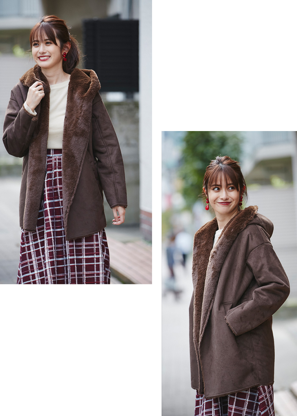 ショールカラーフェイクムートンコート¥9,800+tax COLOR: ベージュ /モカ / ブラウン