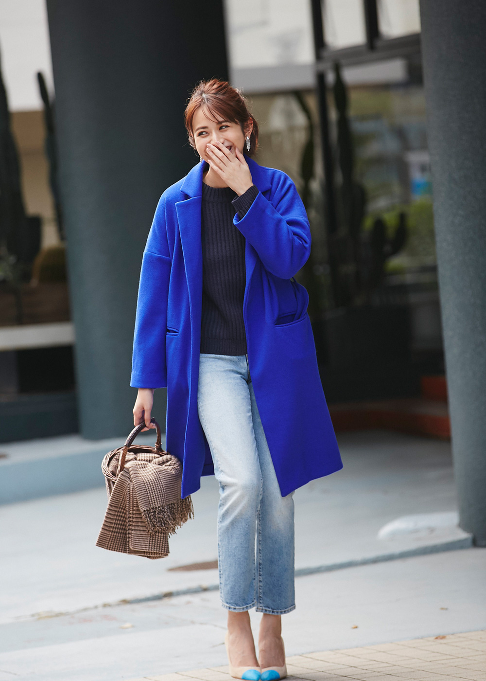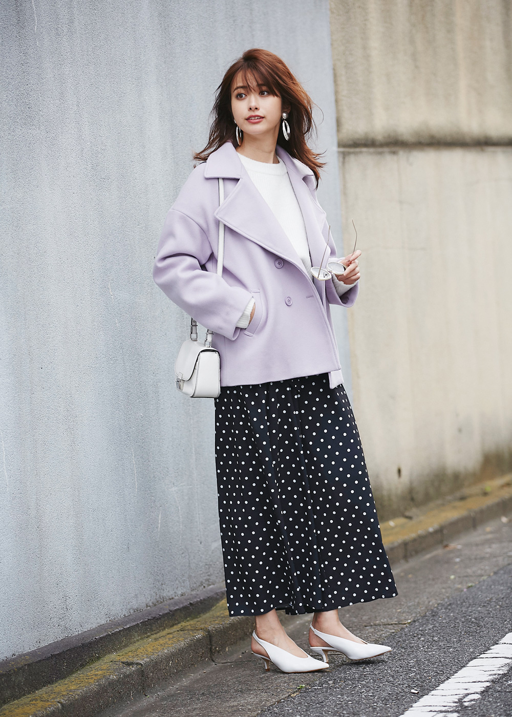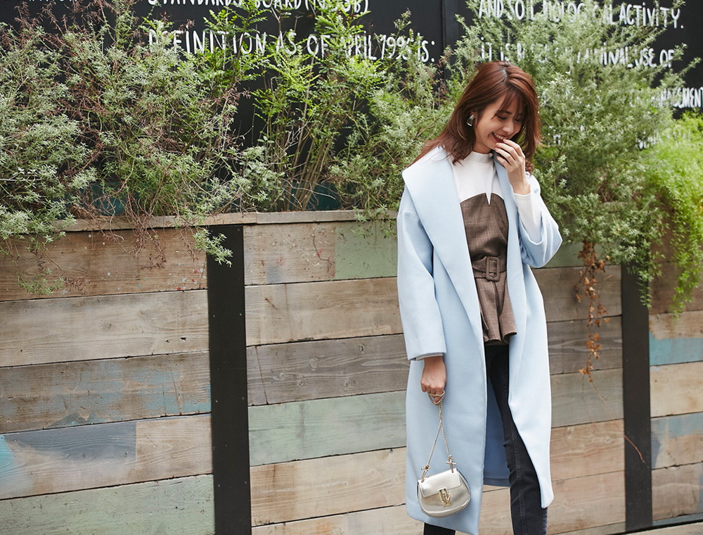 オーバーサイズウール混ピーコート¥15,000+tax COLOR: ベージュ /ネイビー / ラベンダー