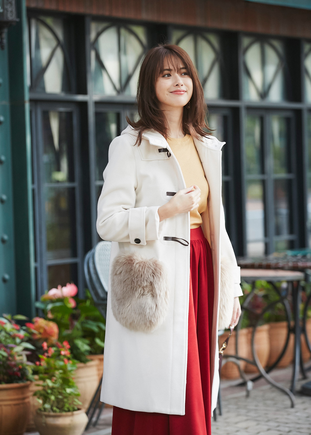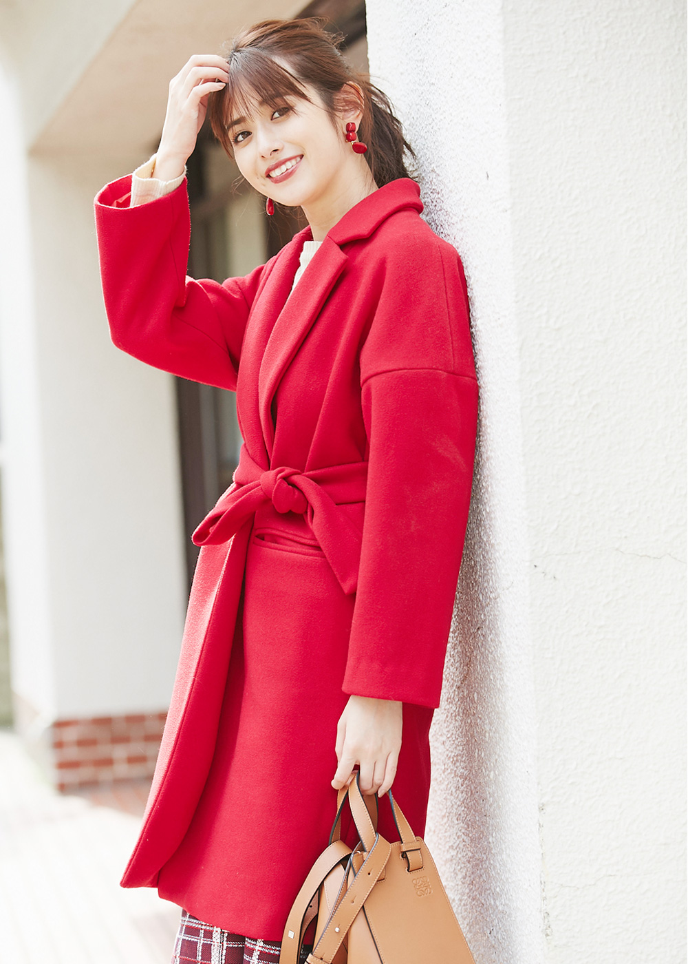 ウール混カラーガウンコート¥15,000+tax COLOR: レッド / イエロー/ブルー