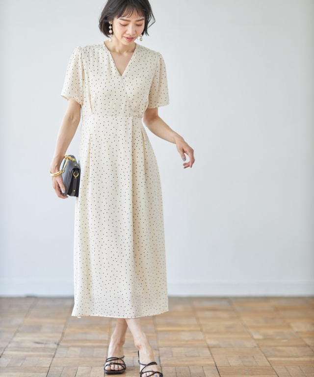 | 商品説明 | : | 大人可愛い華奢見えコーデの出来上がり!一枚でコーデがサマになるドットカシュクールワンピース |