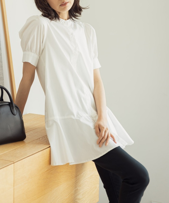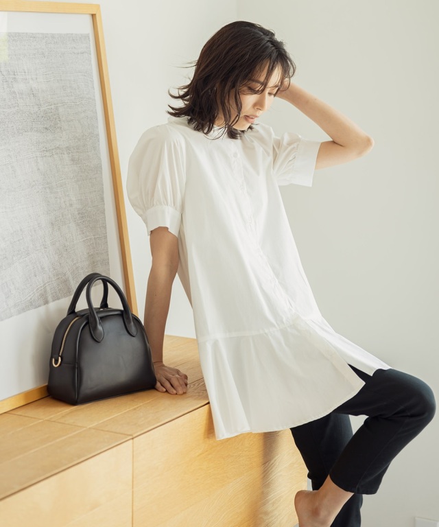 | 商品説明 | : | なめらかでお肌に優しい素材感!爽やかな大人の甘さ漂うパフスリーブペプラムシャツ |