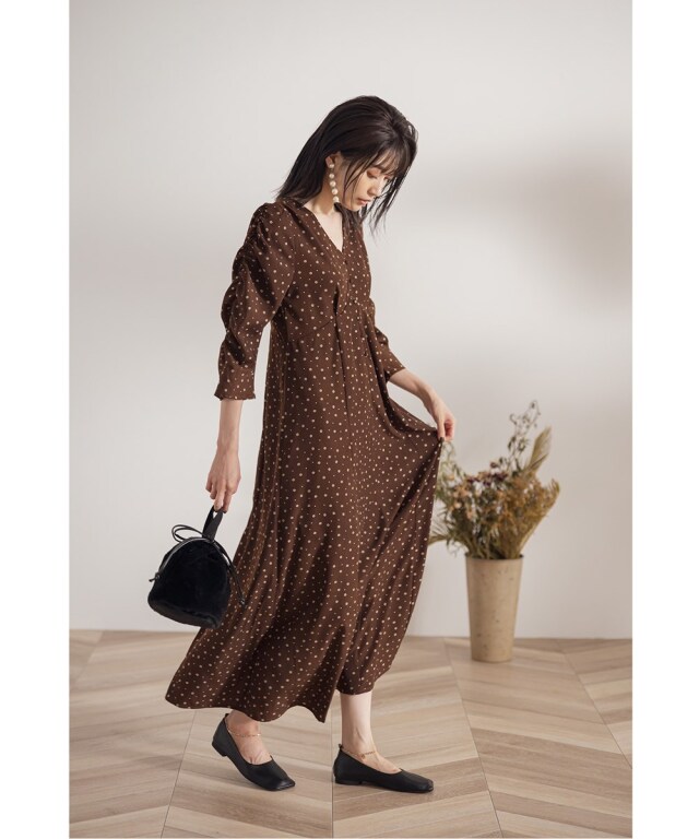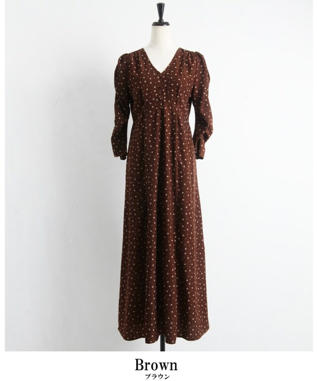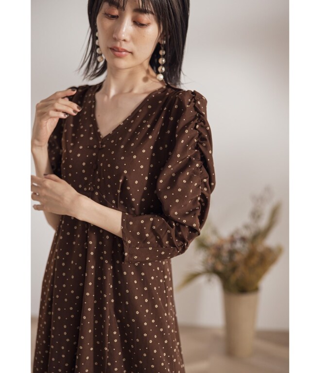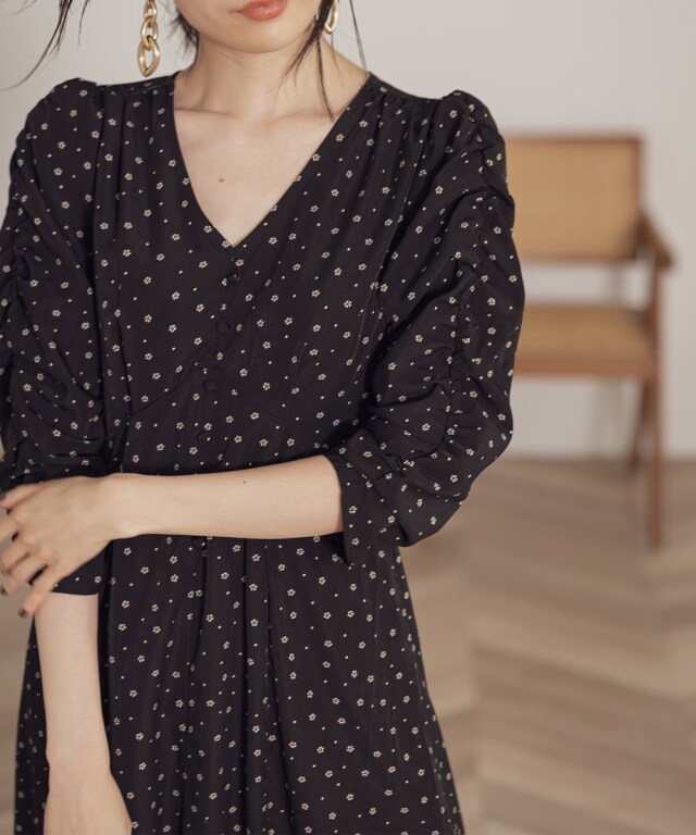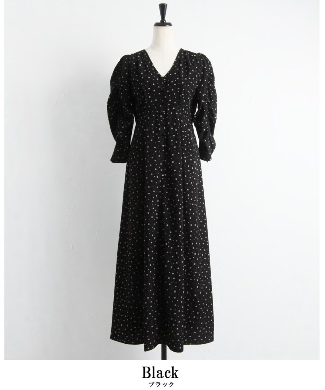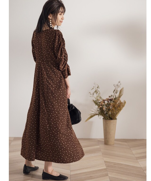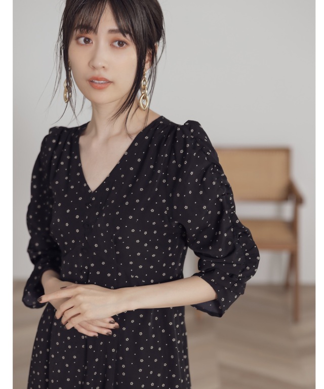 | 商品説明 | : | 季節感UPなオトナ柄アイテム。上品仕上げの小花ドットシャーリングスリーブワンピース |