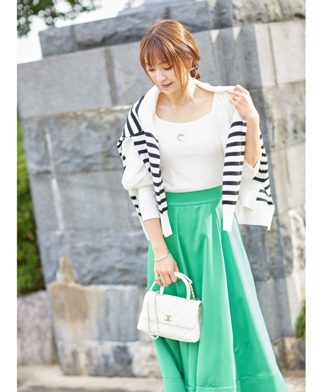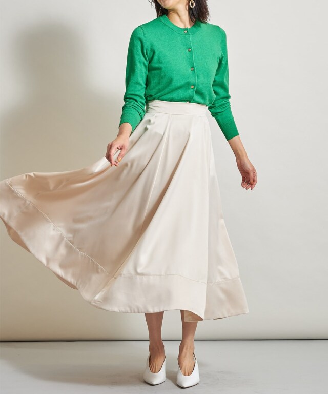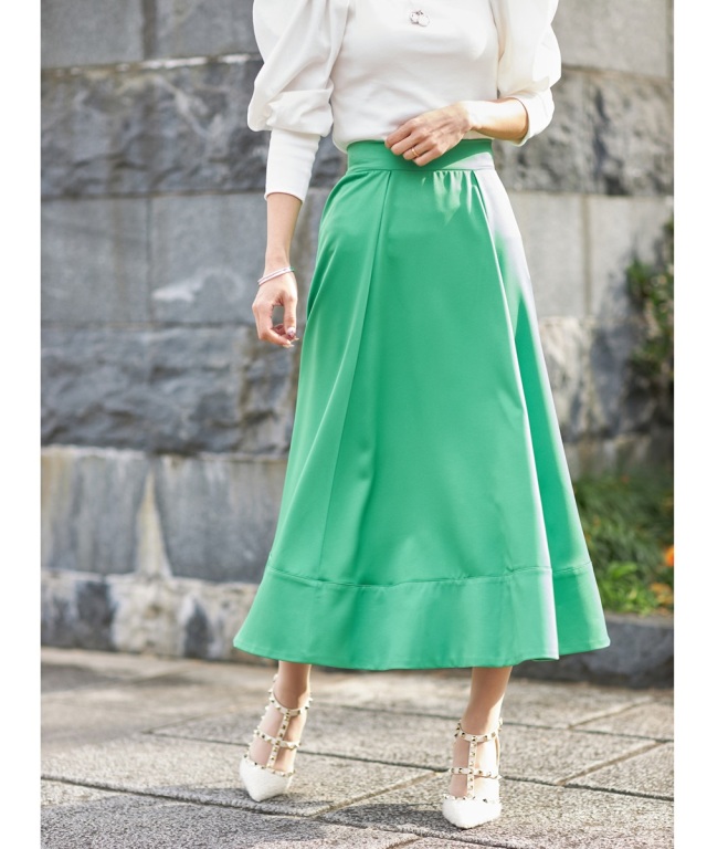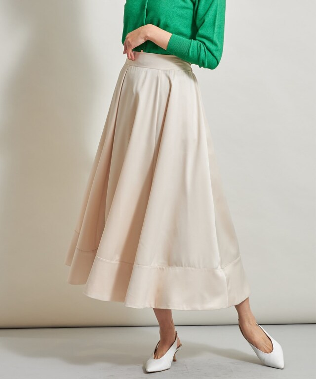 | 商品説明 | : | 上品素材でドラマティックに仕上がるヘム切り替えサテンフレアスカート |