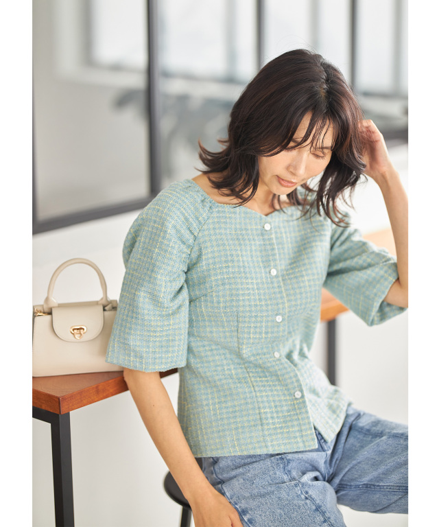 | 商品説明 | : | レトロなレディ感漂わせるカラーツイードボリュームスリーブブラウス |