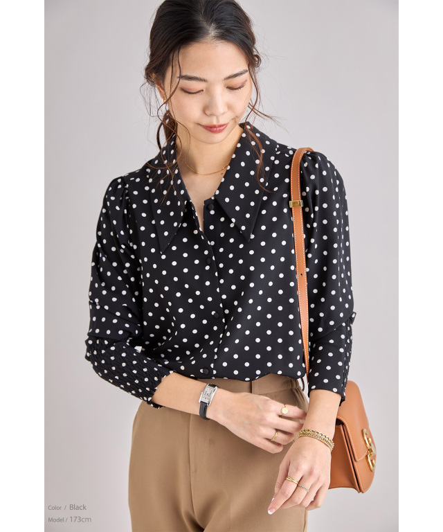 | 商品説明 | : | 一枚でスタイルが決まるビッグカラードットブラウス 存在感のあるビッグカラーが可愛いドットブラウス。パンツにもスカートにも合わせやすい丈感で、シーンを選ばずロングシーズン着用頂けるブラウスです。 |