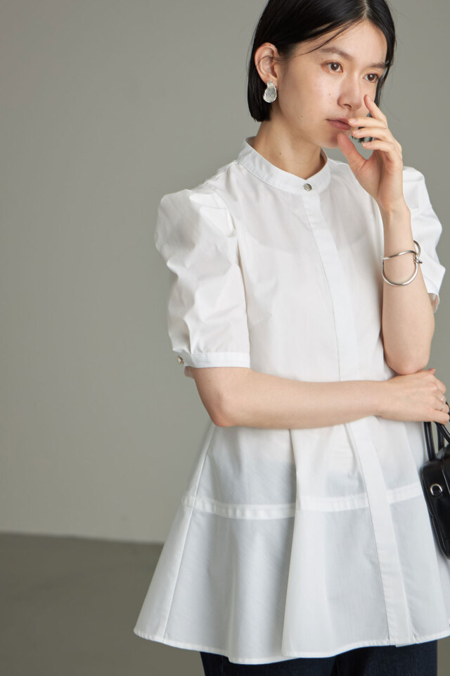 | 商品説明 | : | パワショルペプラムシャツ(ハーフスリーブ) かっちりきれいめに見せてくれるバンドカラーシャツに、女性らしいペプラムとパワショルデザインをプラスし、 上品ハンサムなペプラムシャツにしあげました! 袖にデザインがあり着映えも叶えながら、程よいボリューム感でバランス良く着こなせるのも嬉しい◎ |