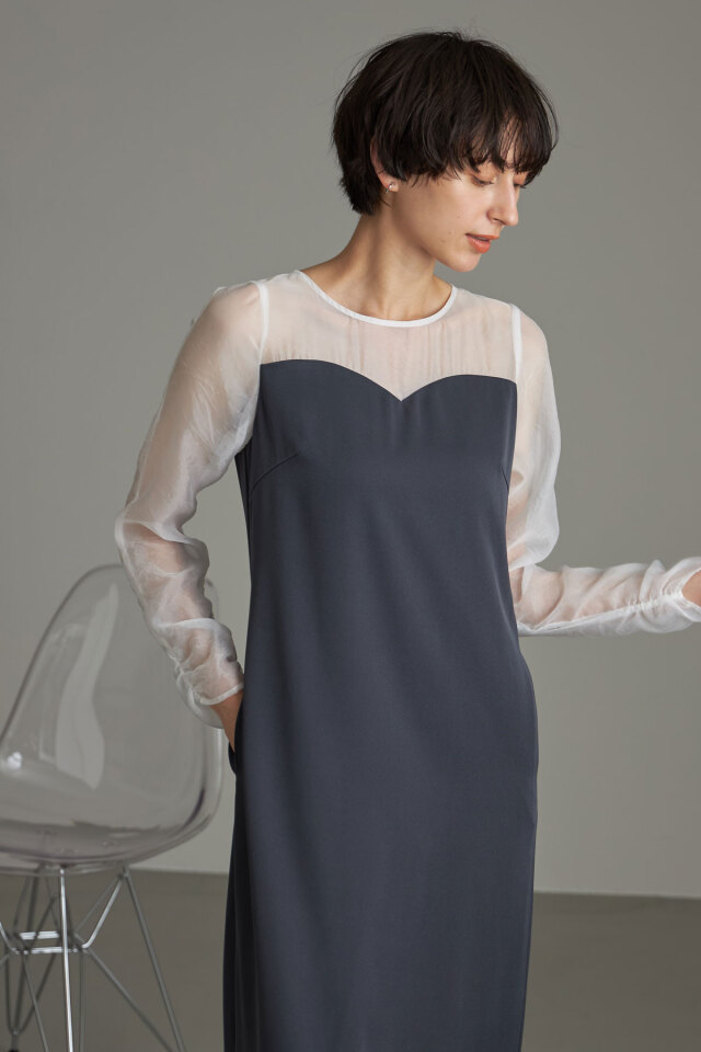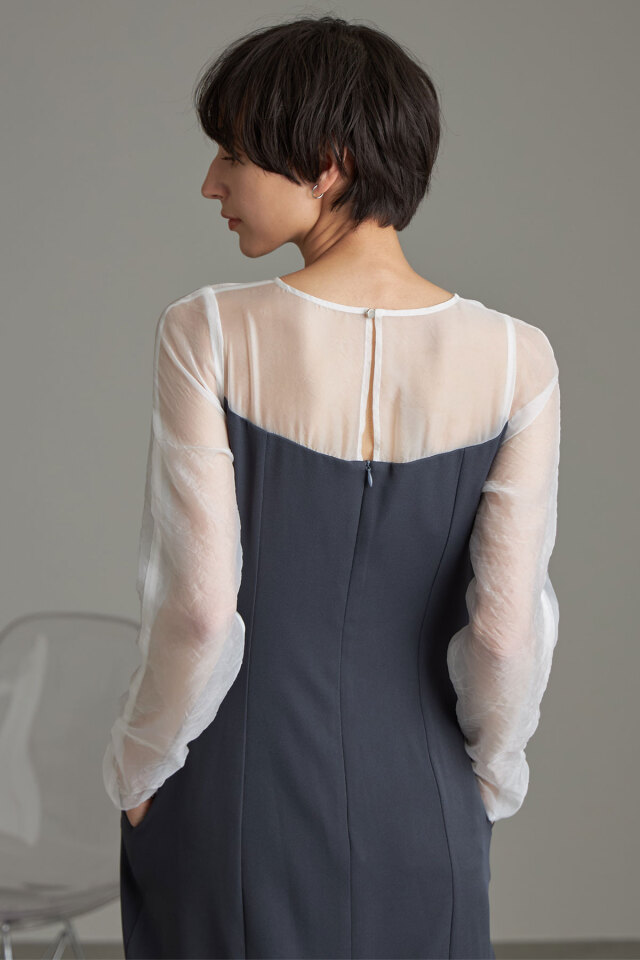裏地/ポリエステル100% (中国製・伸縮性なし・袖・肩のみ透け感あり・裏地あり) |