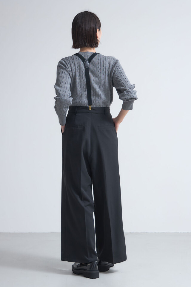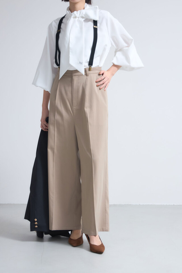 | 商品説明 | : | トレンドのサスペンダー付きデザインを、大人きれいめに落とし込んだサスペンダー付きタックワイドパンツ カジュアルトレンドのサスペンダーアイテム! ノスタルジアでは大人モードにも着こなせるよう、すっきりしたタックワイドパンツと合わせて、 きれいめシーンにも着回せる1着に仕上げました◎ サスペンダーを外して着回すこともできる、万能なアイテムです! |