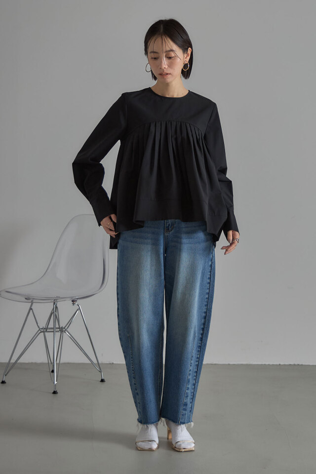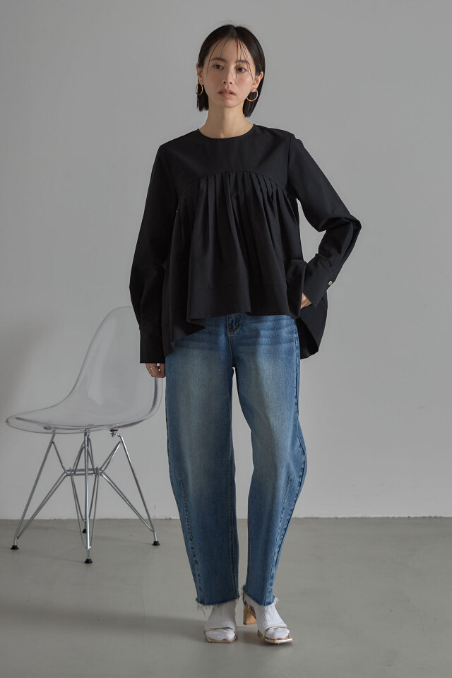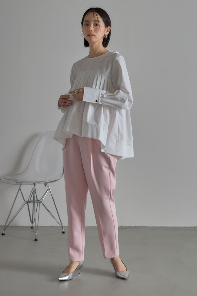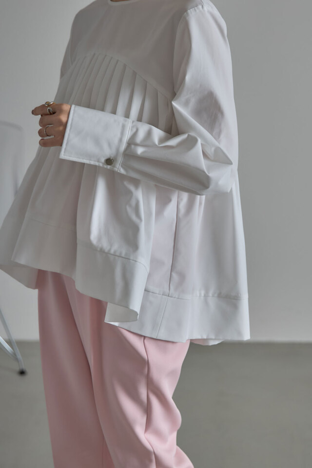 | 商品説明 | : | 上品に着映えするタックデザインが魅力!タックプリーツチュニックブラウス 1枚着るだけで洗練されたシルエットを叶えてくれる、チュニックブラウス! チュニックたけかつ裾広がりのシルエットで、気になる腰回りをカバーしながらすっきりとした印象に◎ 春を見据えたブラウス素材だから、シーズンレスに着回して頂ける1枚です。 シルエットを活かした、細見のパンツやスカート合わせのスタイリングがおすすめ! |