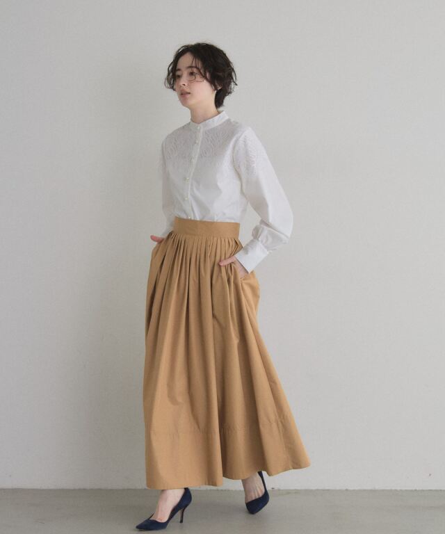 | 商品説明 | ≪ Attention:販売日、在庫状況はWEBと店舗と異なります。予めご了承くださいませ。≫ 華やかなシルエットが魅力のピンタックフレアスカート。 ウエスト部分に施された繊細なピンタックが トップスインした際にすっきりと見せてくれるデザインです。 ハリ感のある素材が、程よいボリュームがありながら軽やかな穿き心地です。 Tシャツやシャツ合わせでカジュアルダウンしたり、 きれいめニットやブラウス合わせで上品な着こなしを楽しんだりと幅広いスタイリングに活躍する1枚です。 |