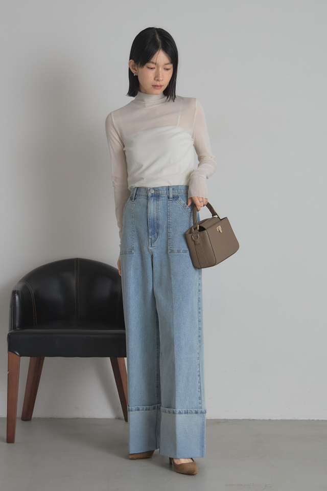 タートルネックが首元をすっきり見せつつ、レイヤードスタイルにも最適です
