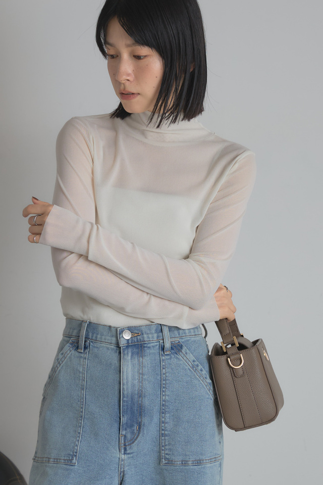 | 商品説明 | : | 軽やかな透け感が魅力のシアータートルニット 程よいシアー素材が女性らしさを引き立て、1枚でもインナーとしても活躍する万能アイテムです フィット感のあるシルエットながら、ストレッチ性に優れており快適な着心地 タートルネックが首元をすっきり見せつつ、レイヤードスタイルにも最適です キャミワンピースやベストのインナーとして、 またデニムやスラックスと合わせてモードに着こなすのもおすすめです! |