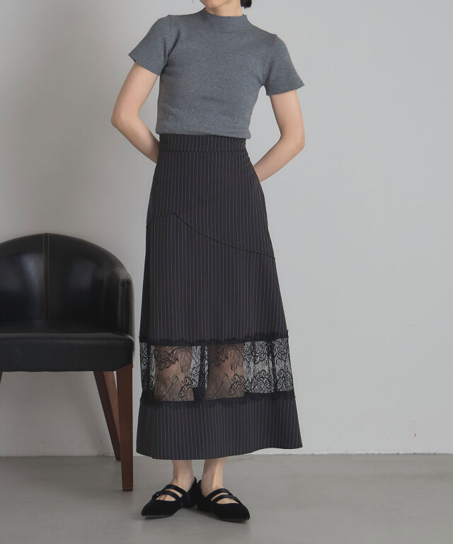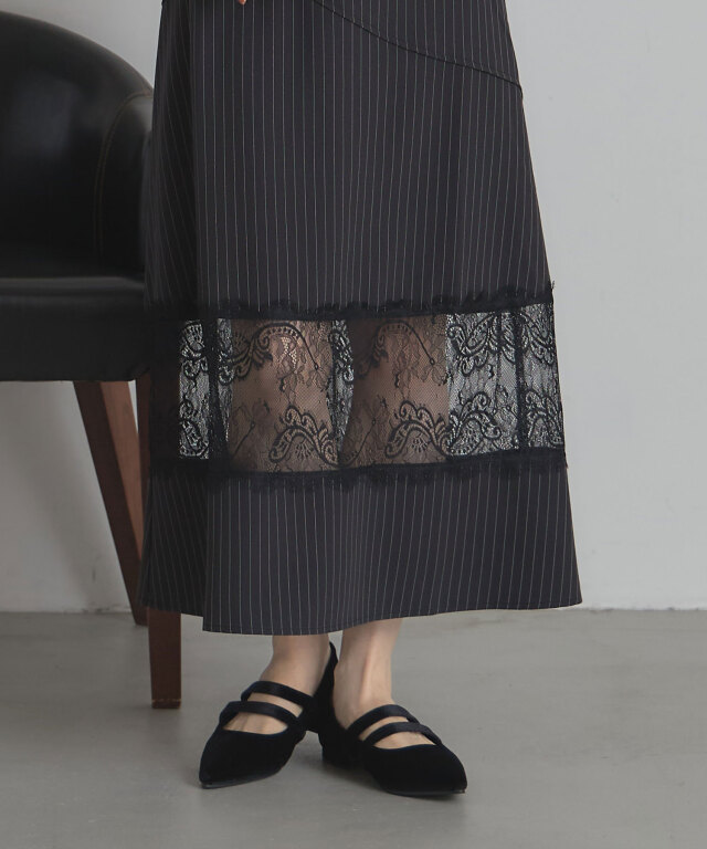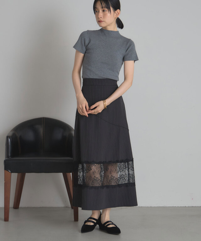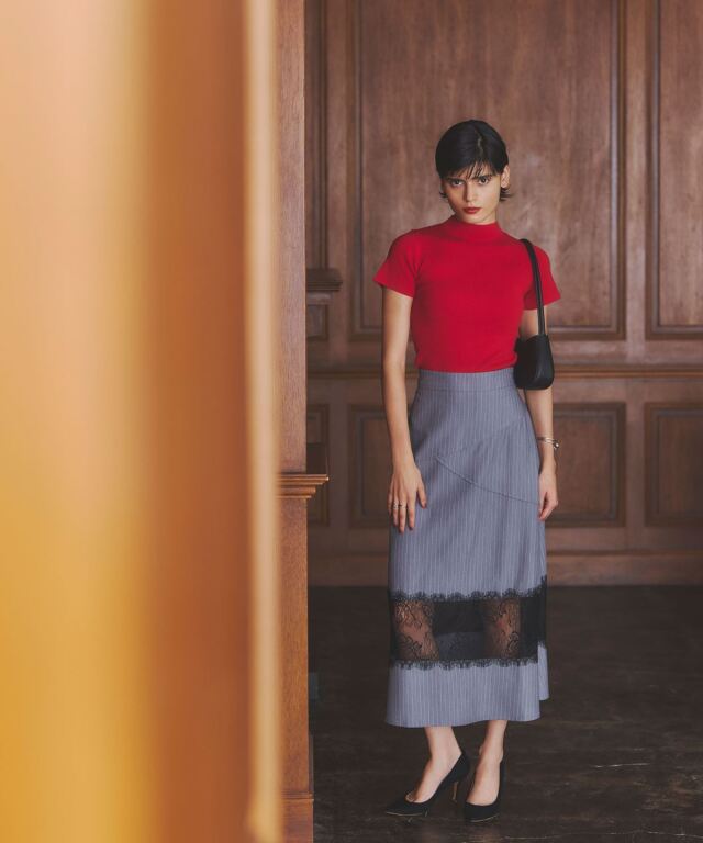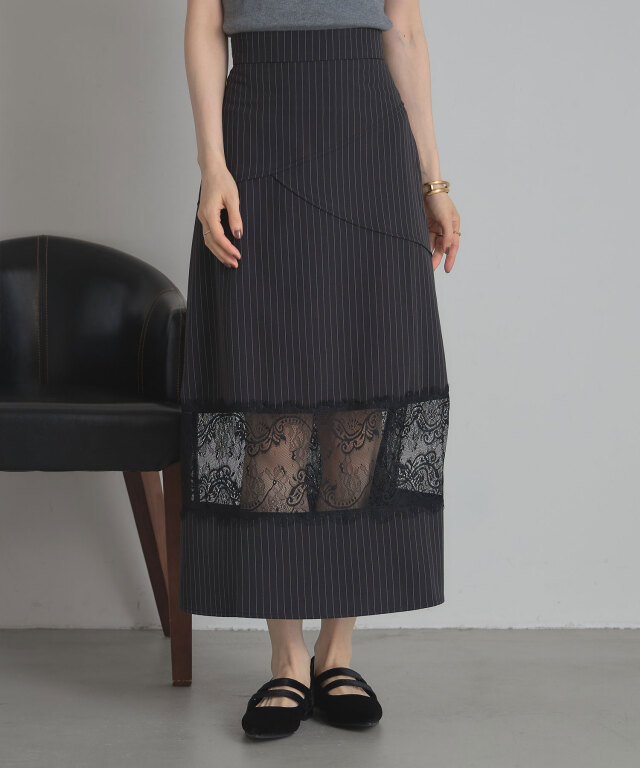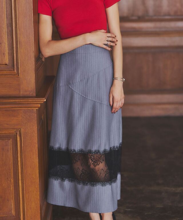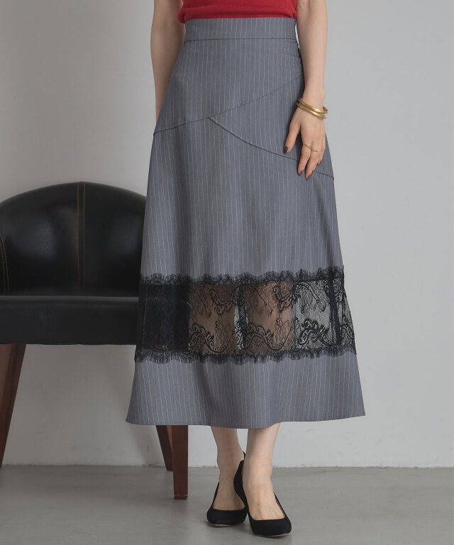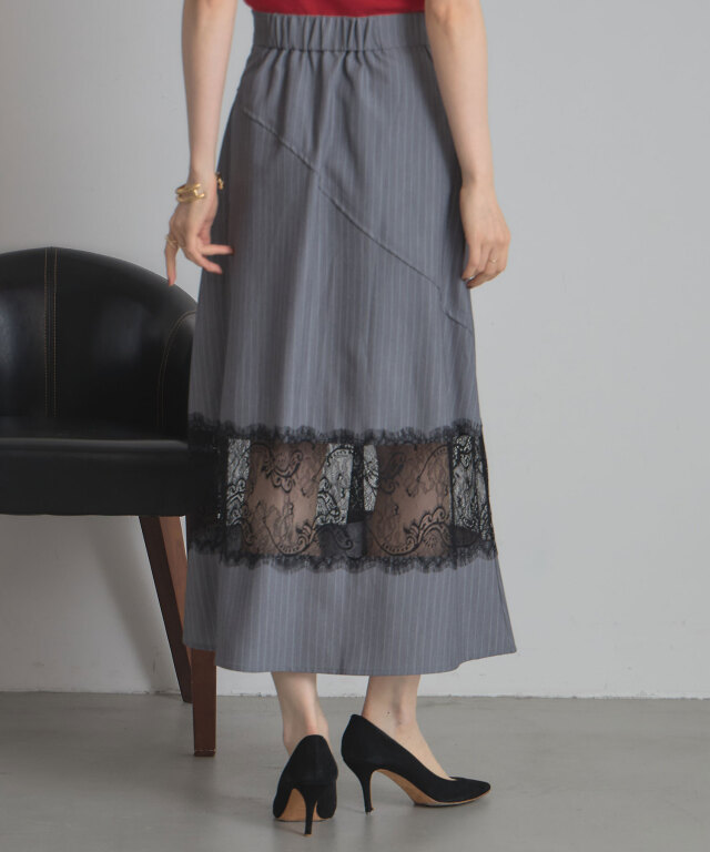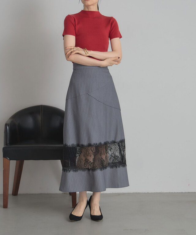 | 商品説明 | : | レースと切り替えデザインが魅せる、上品かつモードなスカート。 クラシカルなストライプ地に繊細なレースを組み合わせた、大人の女性らしさが際立つスカート。 裾部分に透け感のあるレースをあしらうことで、程よい抜け感とエレガントな雰囲気を演出します。 腰回りには斜めに走る切り替えデザインを取り入れ、視線を自然に分散させることでスタイルアップ効果も期待できる仕立てに。 すっきりとしたウエストラインから裾に向かって広がるシルエットは、 体のラインを拾いすぎず、美しく見せてくれるのも嬉しいポイントです。 きれいめなブラウスを合わせればオフィスやフォーマルシーンに、 シンプルなニットと合わせればこなれ感のあるデイリーコーデにと、幅広いスタイルで活躍。 シンプルながらも存在感を放つ一枚は、着こなしをクラスアップしてくれる頼れるアイテムです。 |