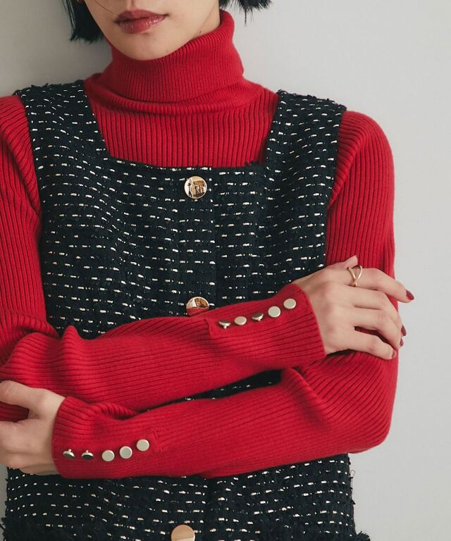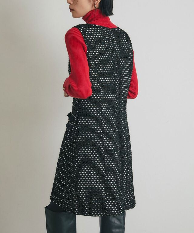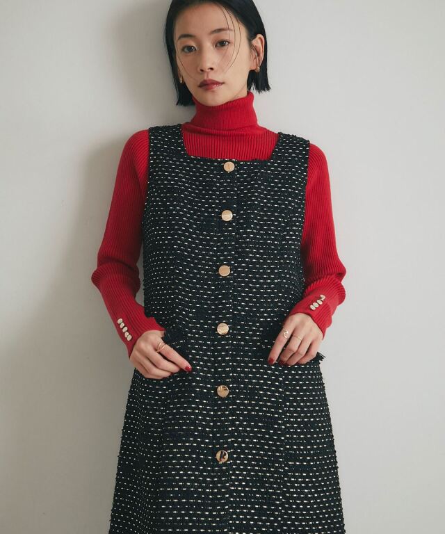 | 商品説明 | ≪ Attention:販売日、在庫状況はWEBと店舗と異なります。予めご了承くださいませ。≫ クラシカルにきらめく、ツイードミニの特別感。 上品なラメを織り込んだミックスツイードが、動くたびにさりげなく輝くジャンスカ。 フロントに並んだメタルボタンがアクセントとなり、クラシカルな雰囲気の中にモードな表情を添えます。 ミニ丈ながらも上質な素材感で大人らしく仕上がり、ブラウスやニットを合わせるだけで洗練されたスタイルに。 シーズンムードを高める主役級アイテムです。 |