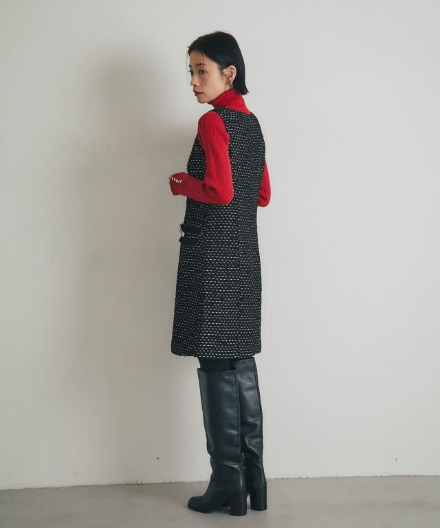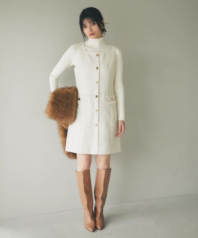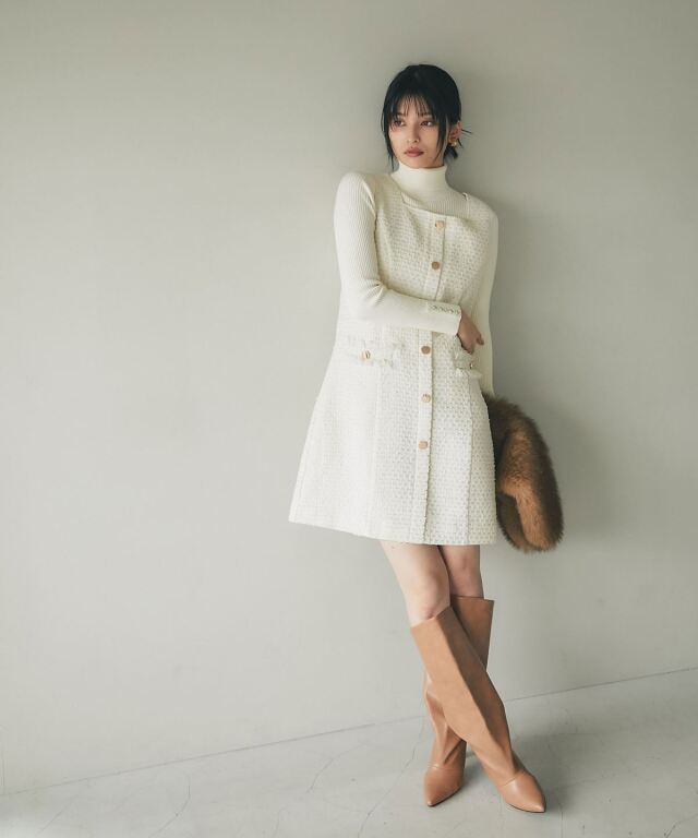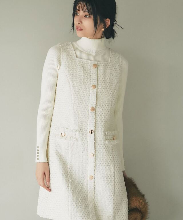 | 商品説明 | : | クラシカルにきらめく、ツイードミニの特別感。 上品なラメを織り込んだミックスツイードが、動くたびにさりげなく輝くジャンスカ。 フロントに並んだメタルボタンがアクセントとなり、クラシカルな雰囲気の中にモードな表情を添えます。 ミニ丈ながらも上質な素材感で大人らしく仕上がり、 ブラウスやニットを合わせるだけで洗練されたスタイルに。 シーズンムードを高める主役級アイテムです。 |