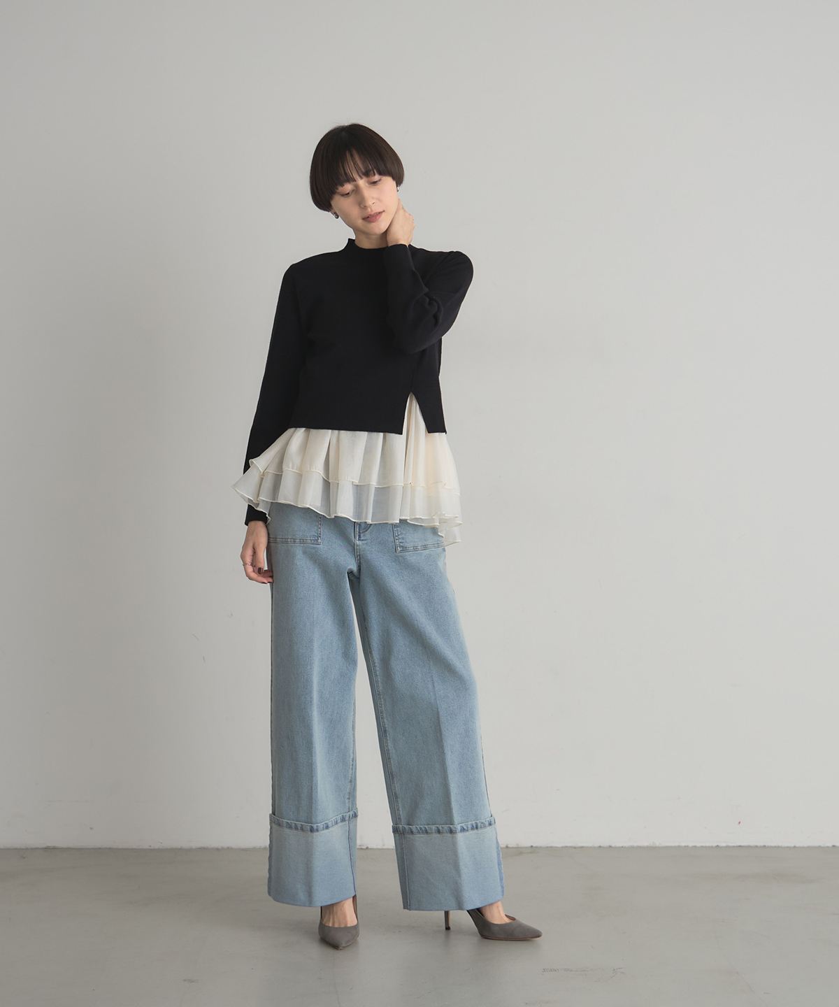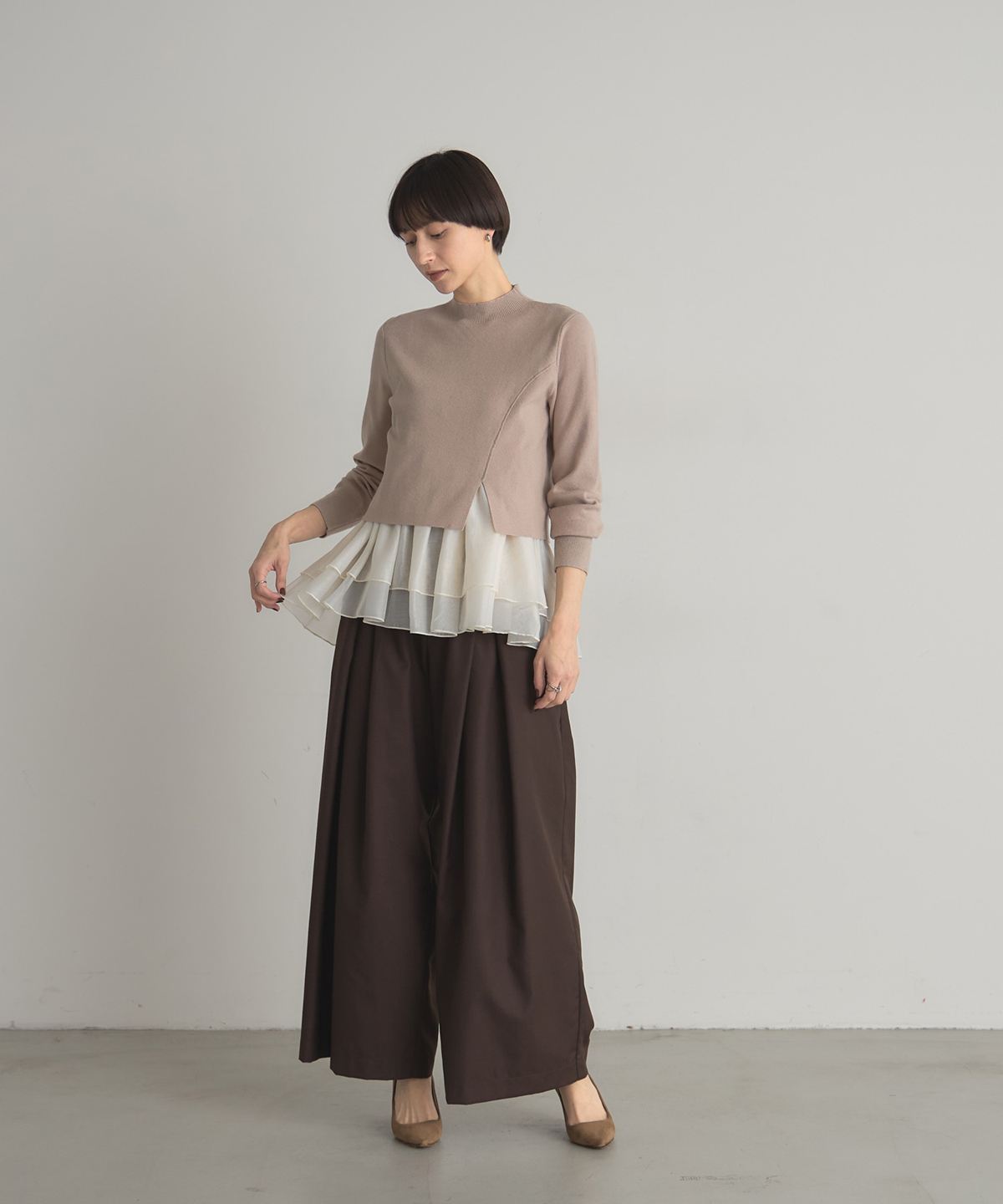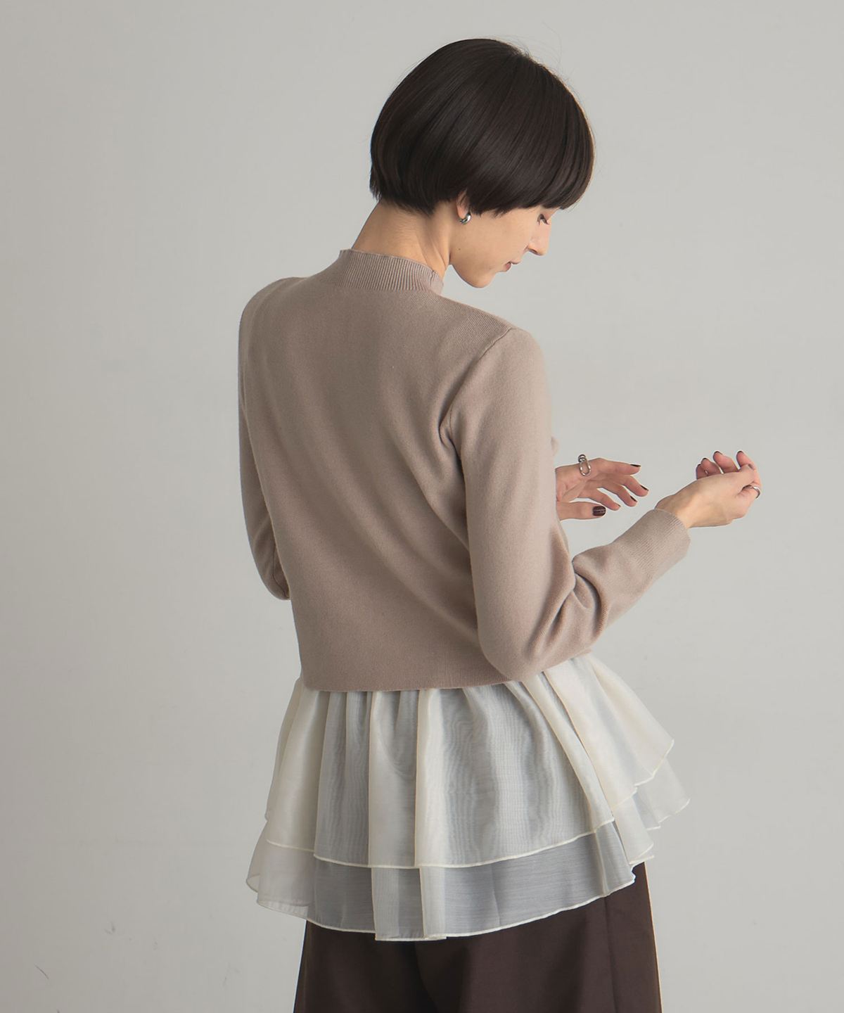 | 商品説明 | : | 重ね着でこなれる、フリルで魅せるレイヤードスタイル。 裾フリルキャミソールと短丈ニットプルオーバーがセットになった、レイヤード風プルオーバー。 ふんわり広がるフリルが女性らしさを引き立てつつ、コンパクトなニットがバランスよくすっきり見せてくれます。 異素材の組み合わせがスタイリングに奥行きをプラスし、1枚で着映えする優秀アイテム。 デニムやスカートなど、どんなボトムにも合わせやすい万能デザインです。 |