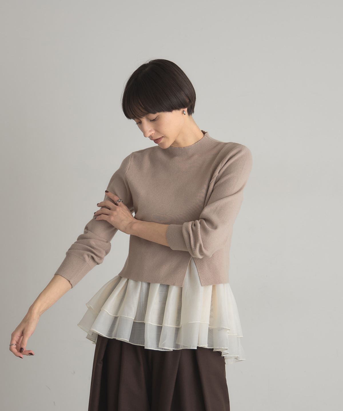 | 商品説明 | ≪ Attention:販売日、在庫状況はWEBと店舗と異なります。予めご了承くださいませ。≫ 重ね着でこなれる、フリルで魅せるレイヤードスタイル。 裾フリルキャミソールと短丈ニットプルオーバーがセットになった、レイヤード風プルオーバー。 ふんわり広がるフリルが女性らしさを引き立てつつ、コンパクトなニットがバランスよくすっきり見せてくれます。 異素材の組み合わせがスタイリングに奥行きをプラスし、1枚で着映えする優秀アイテム。 デニムやスカートなど、どんなボトムにも合わせやすい万能デザインです。 |