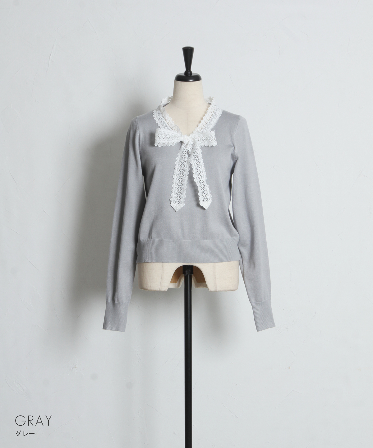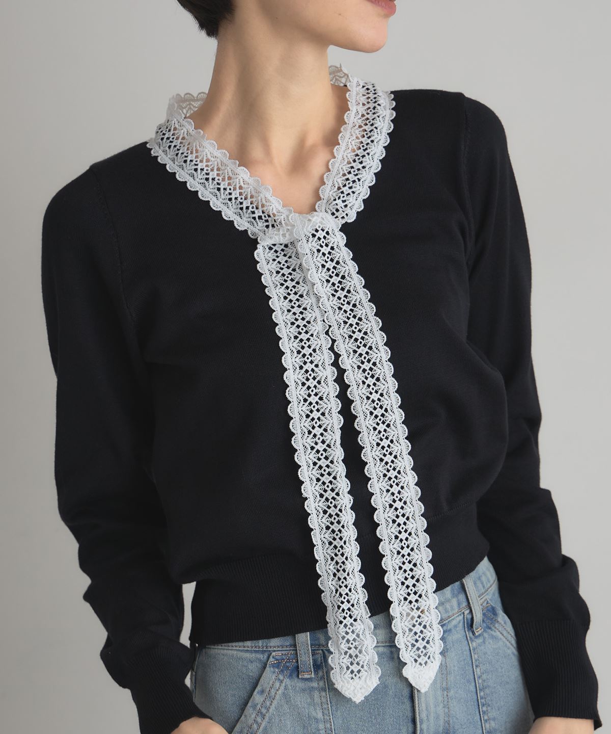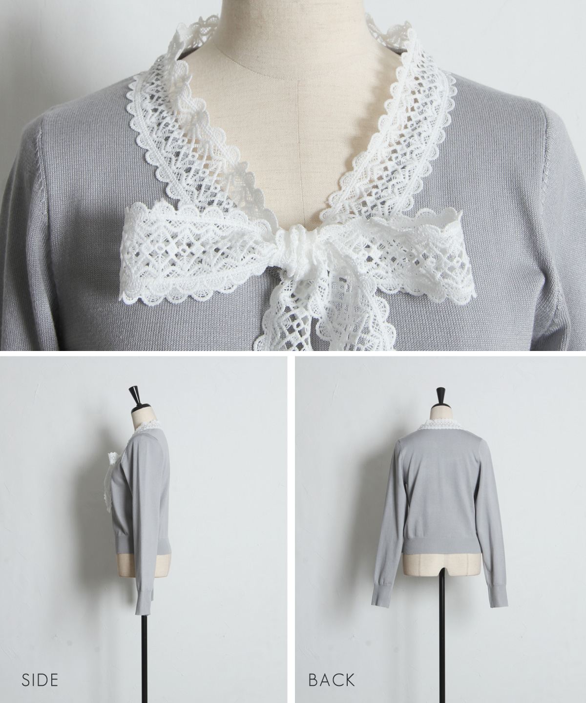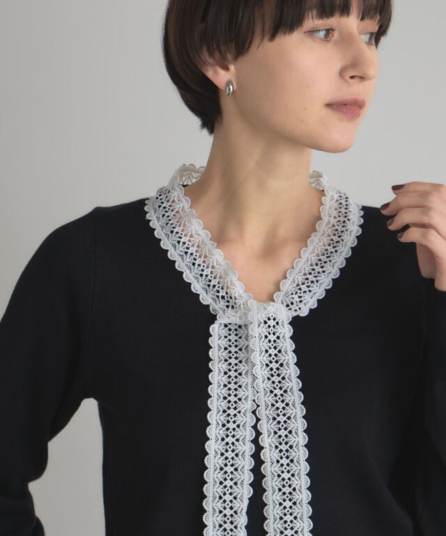 | 商品説明 | : | 華やかさと上品さをひと結び、レースボウタイニット。 すっきりとしたシルエットのニットに、ケミカルレースのボウタイをあしらった上品なデザイン。 首元の華やかなディテールが顔周りを明るく見せ、シンプルなボディラインと好バランス。 オフィスからカジュアルまで幅広く活躍し、一枚でコーディネートを格上げしてくれる万能アイテムです。 |