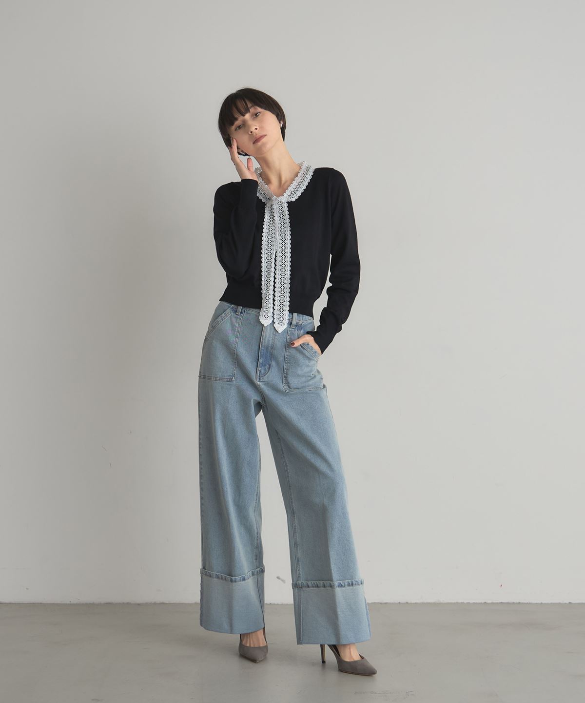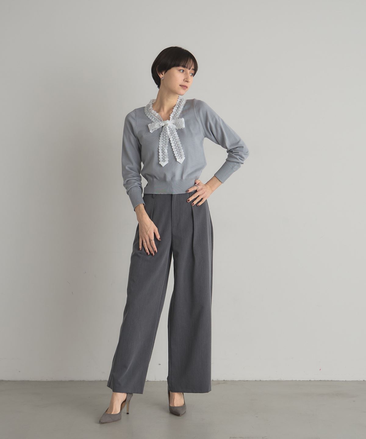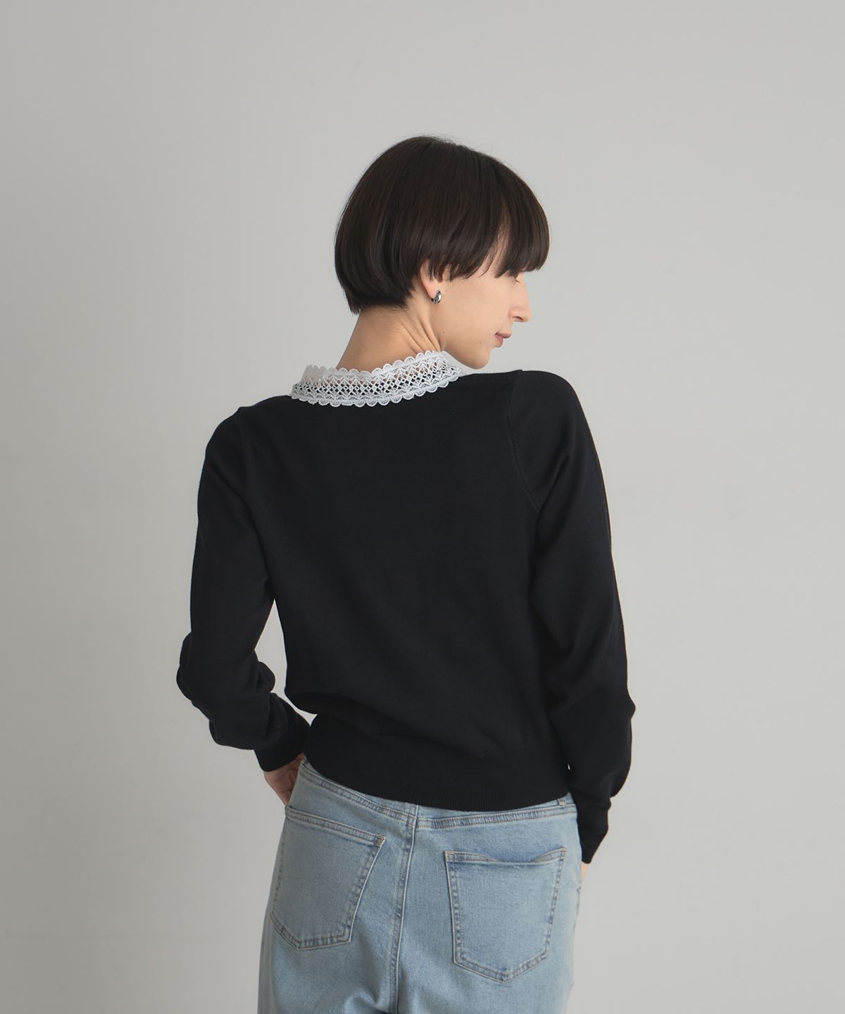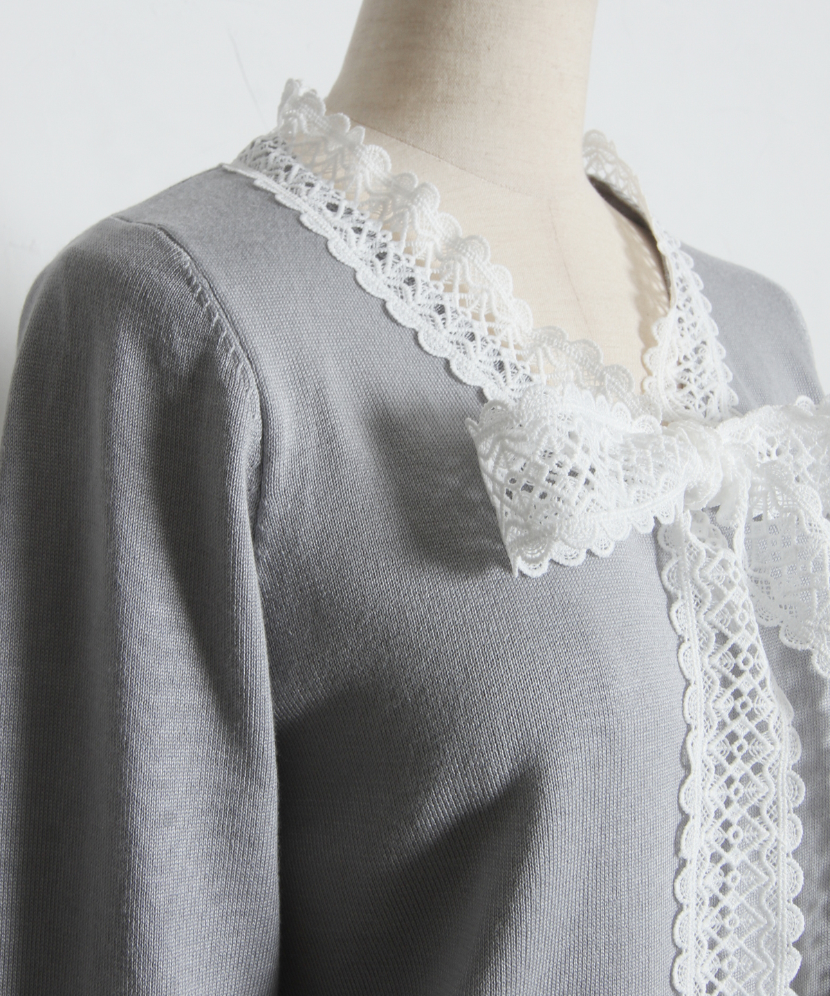 | 商品説明 | : | 華やかさと上品さをひと結び、レースボウタイニット。 すっきりとしたシルエットのニットに、ケミカルレースのボウタイをあしらった上品なデザイン。 首元の華やかなディテールが顔周りを明るく見せ、シンプルなボディラインと好バランス。 オフィスからカジュアルまで幅広く活躍し、一枚でコーディネートを格上げしてくれる万能アイテムです。 |