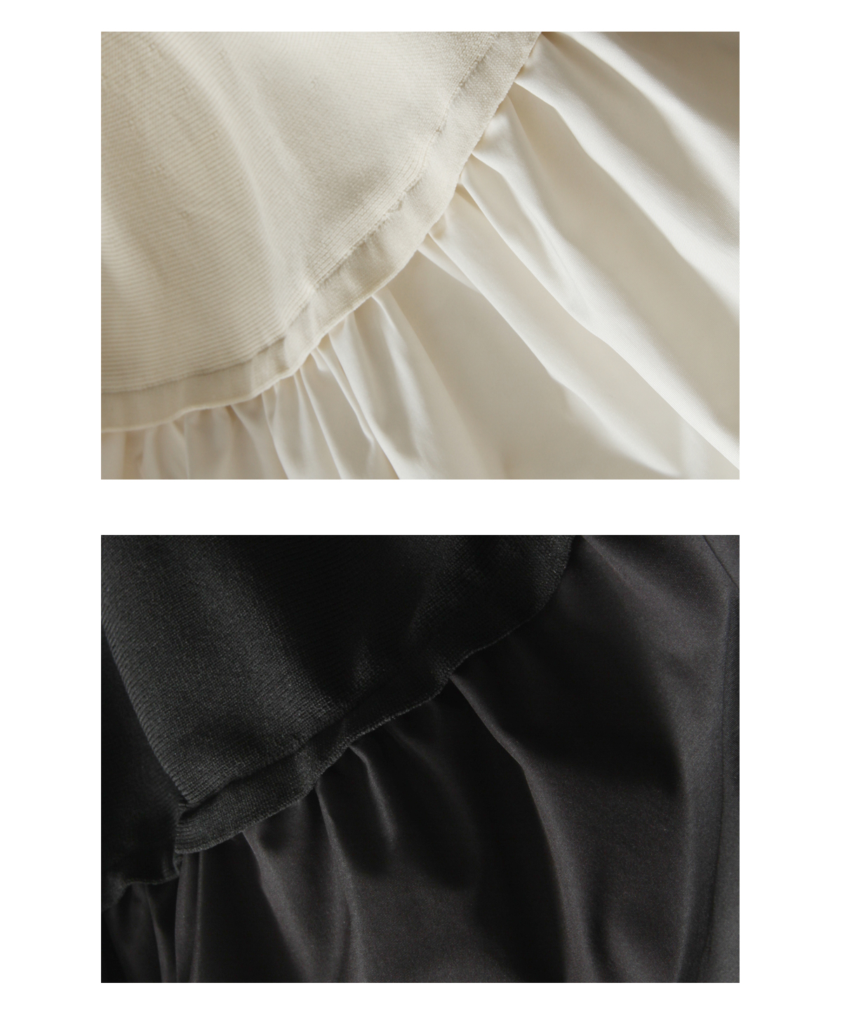 | 素材 | ニット部分/ポリエステル100% 表地/ポリエステル100% 裏地/ポリエステル100% (中国製・伸縮性:あり・透け感:なし・裏地:あり) |