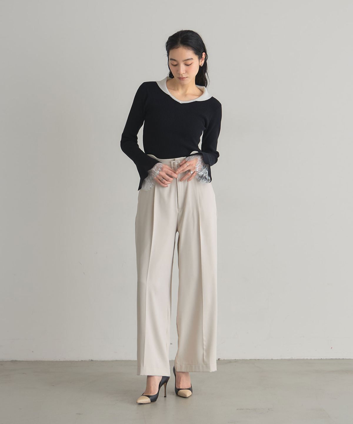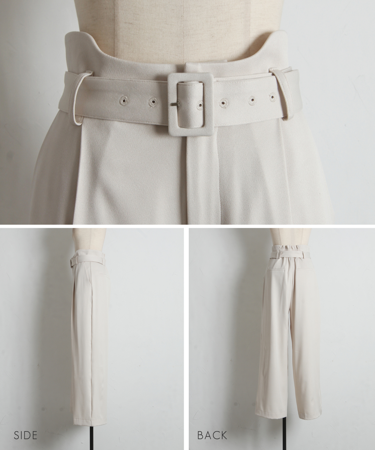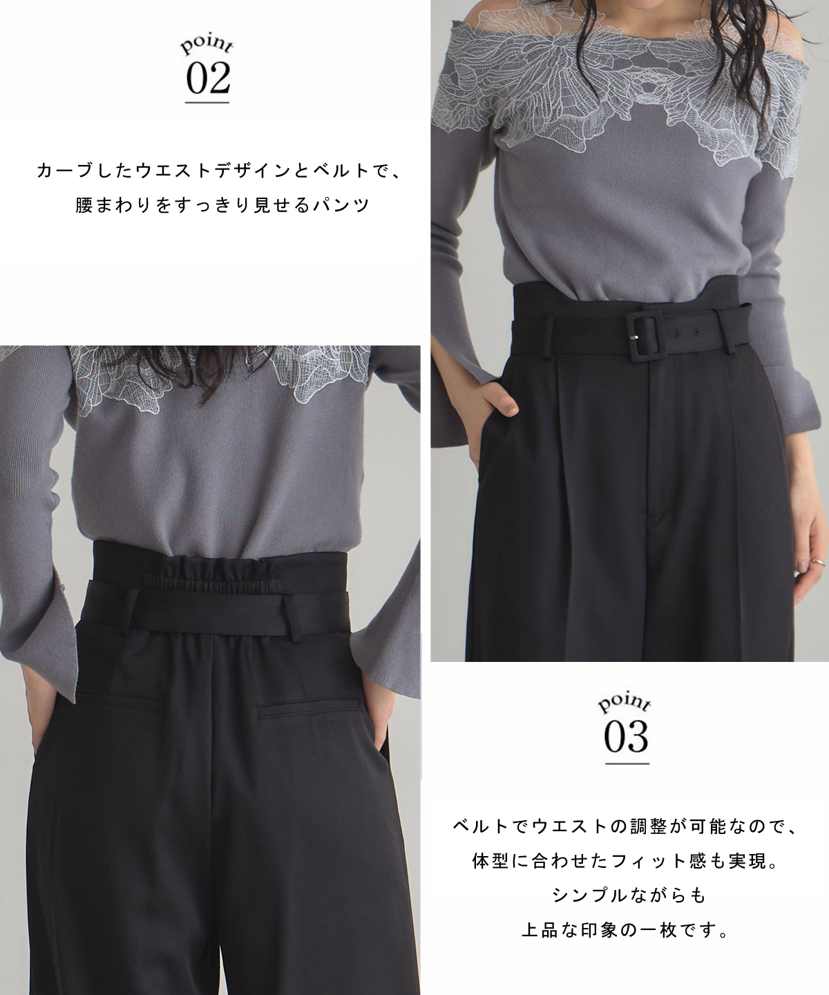 | 商品説明 | : | ウエストラインを美しく見せる、カーブウエストパンツ。 カーブしたウエストデザインとベルトで、腰まわりをすっきり見せるパンツ。 ストレートシルエットで脚をまっすぐに見せつつ、程よいゆとりで動きやすさも確保。 きれいめ素材を使用し、オフィススタイルからお出かけまで幅広く活躍します。 ベルトでウエストの調整が可能なので、体型に合わせたフィット感も実現。 シンプルながらも上品な印象の一枚です。 |
