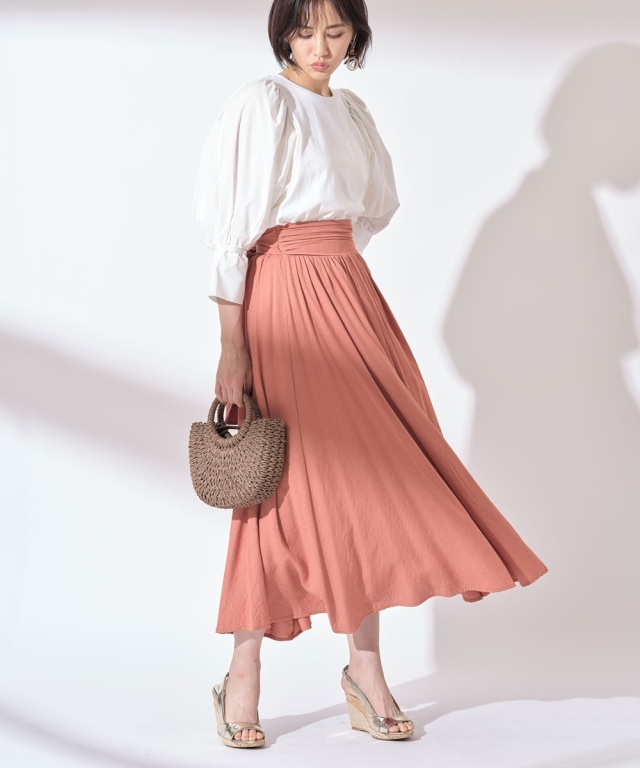 | 商品説明 | : | エレガントな揺れ感で視線集まる!女性らしいスタイルにマッチするバックリボンギャザーフレアスカート |