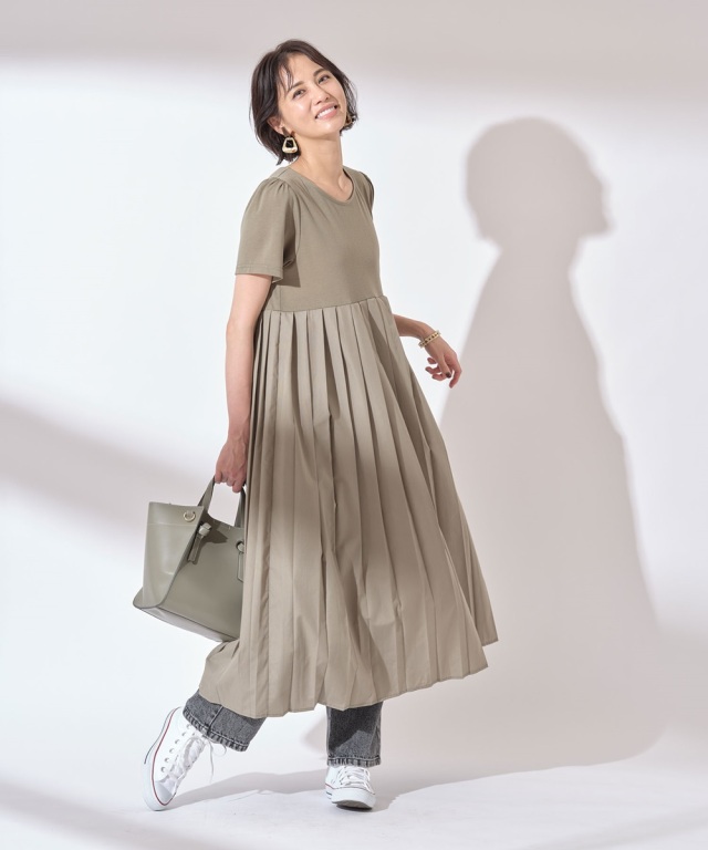 | 商品説明 | : | ストンとした落ち感とゆったりシルエットが心地良い、ナチュラルムードのカットソープリーツワンピ |