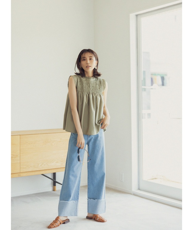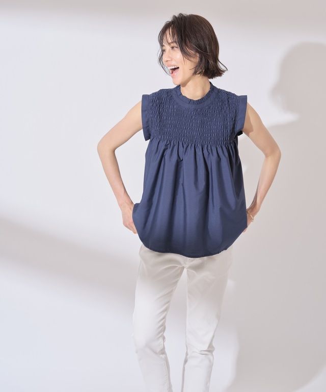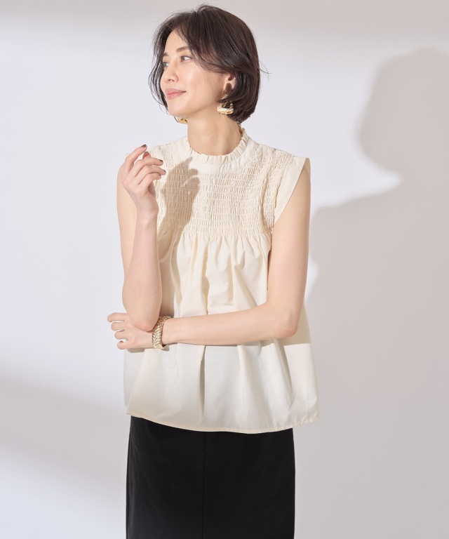 | 商品説明 | : | 季節感のあるナチュラルフェミニンなスタイリングに導くシャーリングノンスリーブトップス |