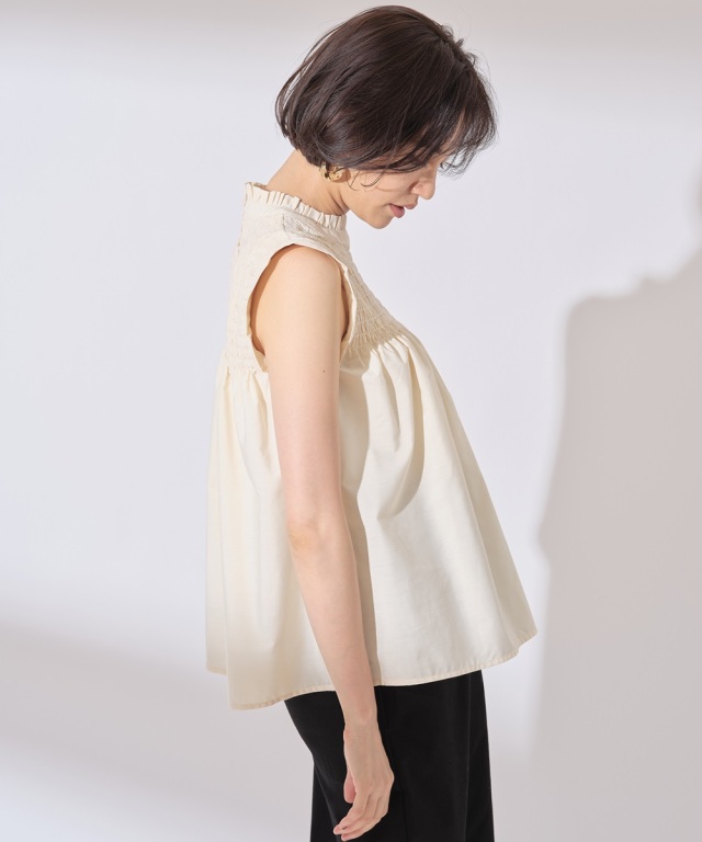 | 商品説明 | ≪ Attention:販売日、在庫状況はWEBと店舗と異なります。予めご了承くださいませ。≫ 季節感のあるナチュラルフェミニンなスタイリングに導くシャーリングノンスリーブトップス |