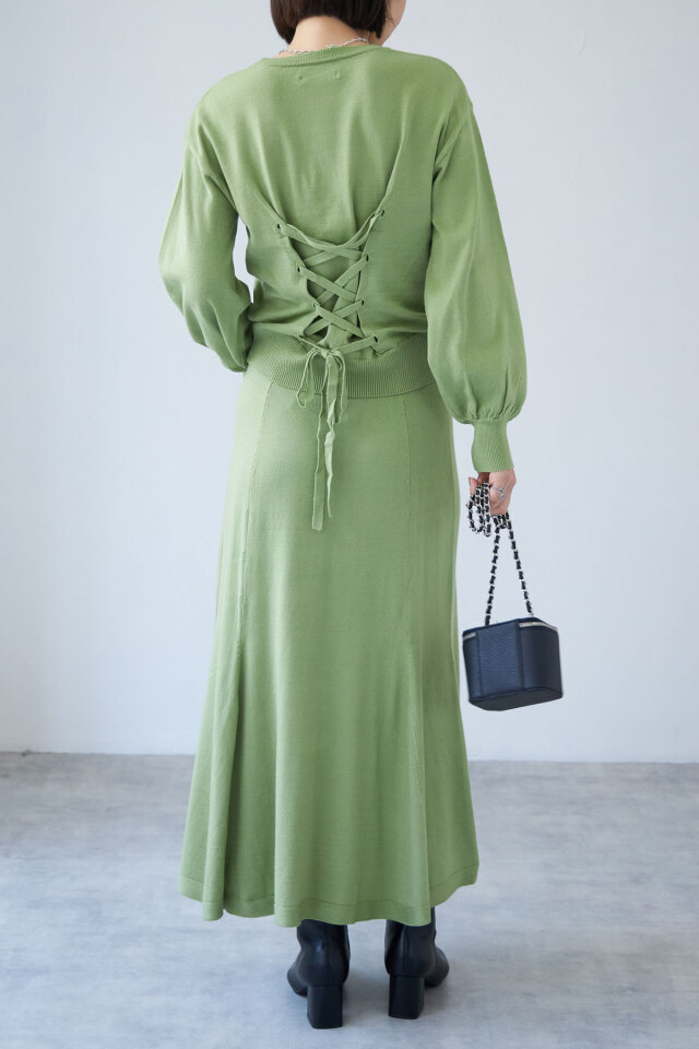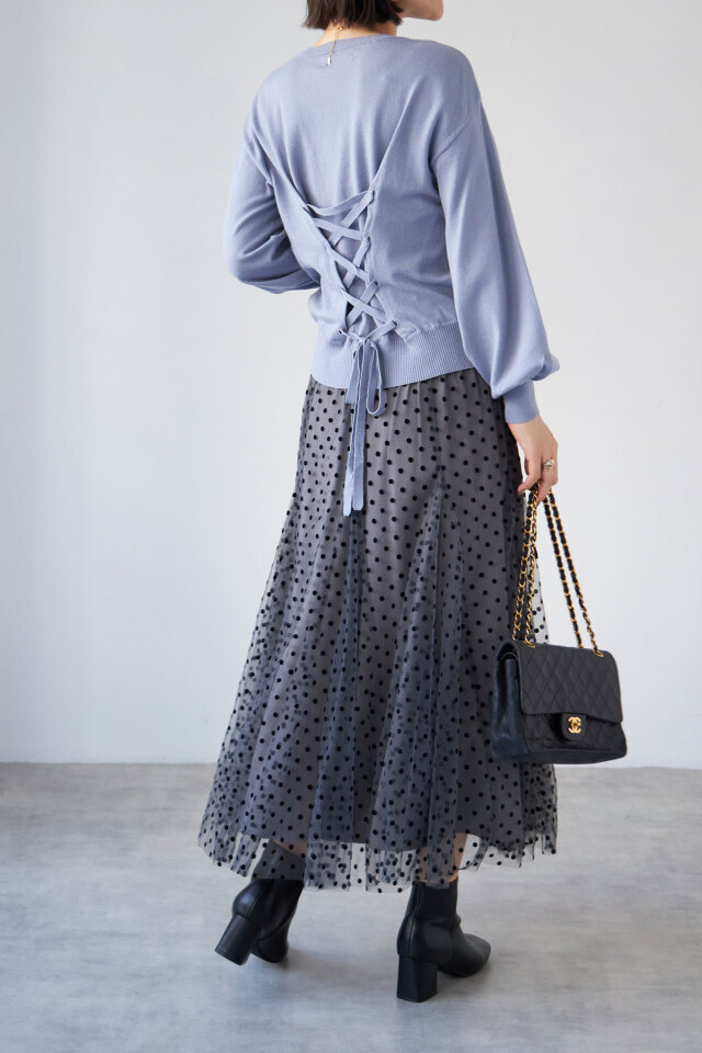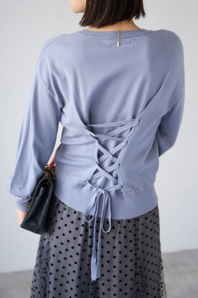 | 商品説明 | : | 大人の甘さを演出するバックレースアップニットプルオーバー |