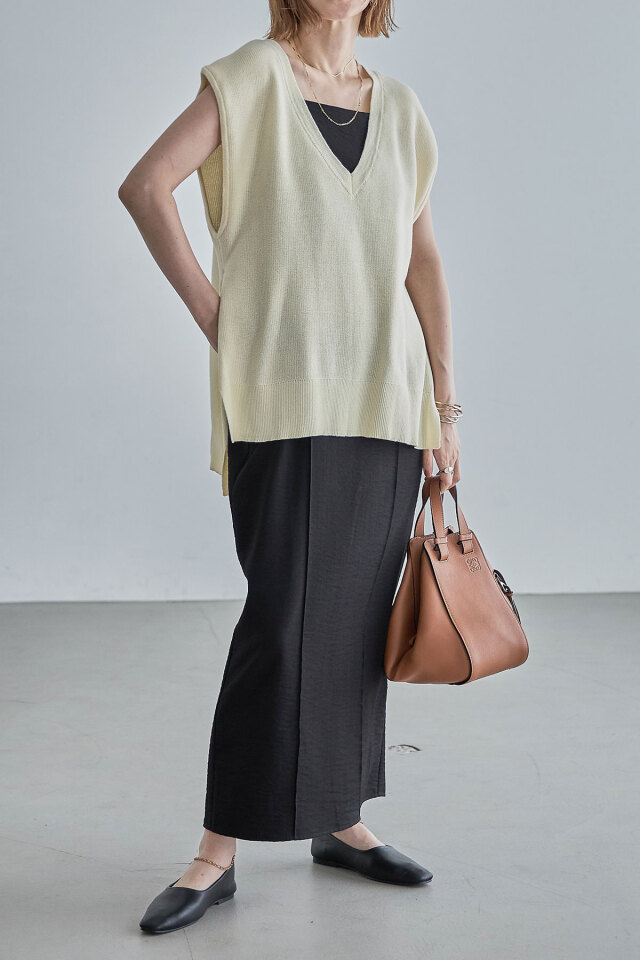 | 商品説明 | ≪ Attention:販売日、在庫状況はWEBと店舗と異なります。予めご了承くださいませ。≫ 着こなしに奥行きをプラスするVネック前後差ベスト |