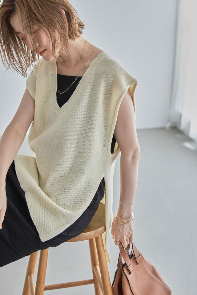 | 商品説明 | : | 着こなしに奥行きをプラスするVネック前後差ベスト |