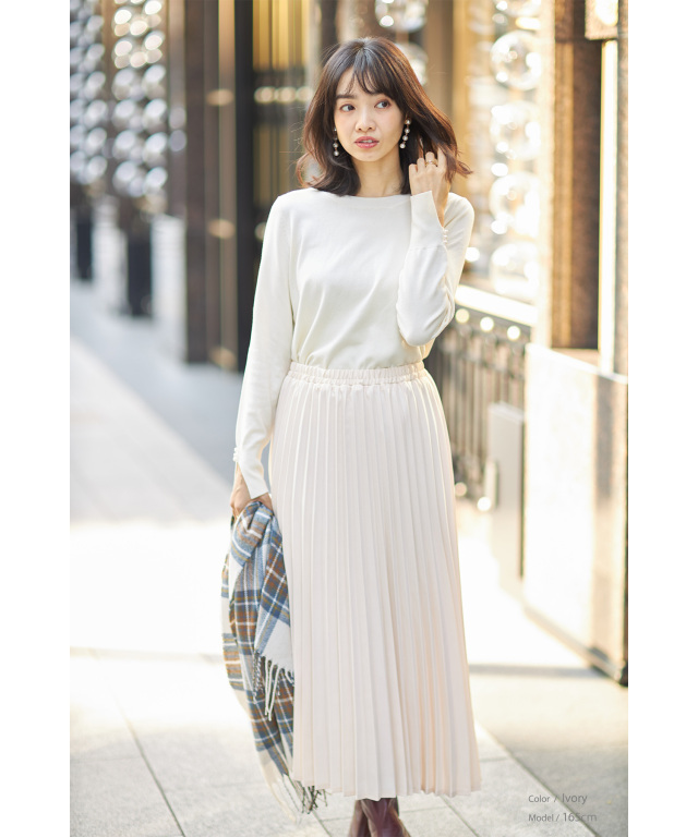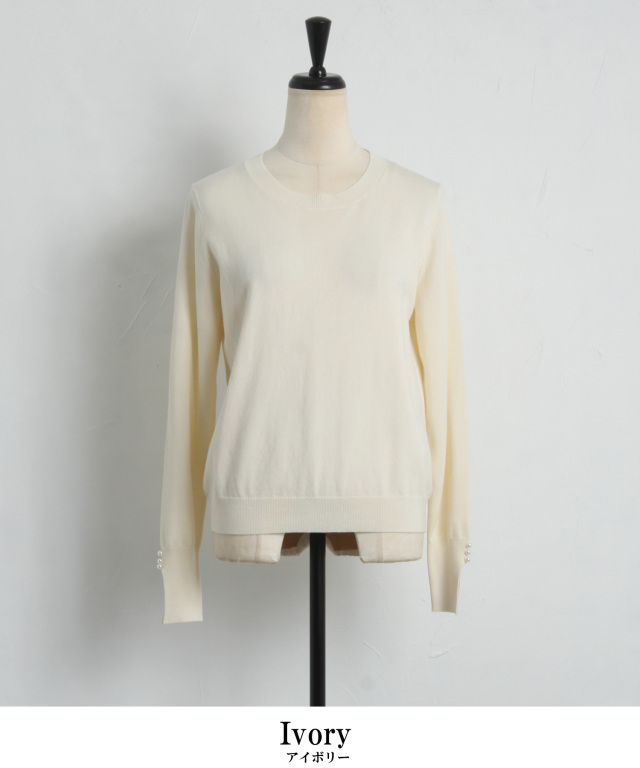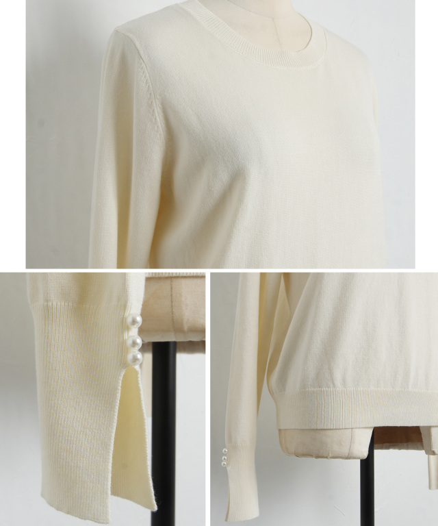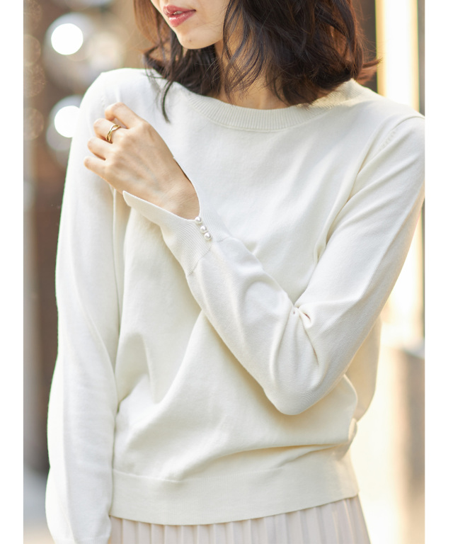 | 商品説明 | : | カフスのようなすぼまった袖口デザインが目を惹くパールリブニットプルオーバー ベーシックかつ洗練された雰囲気のニットプルオーバーは袖口のパールが手元を華やかに魅せつつ、上品さも演出。パンツ、スカートなどにはもちろんオールインワンのインナーとしてもおすすめ。 |