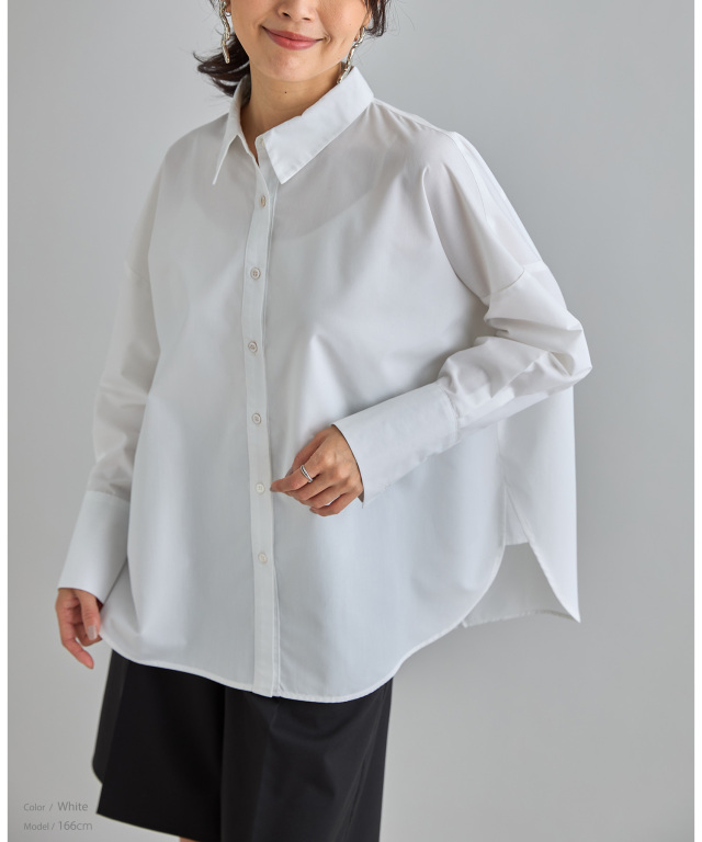 | 商品説明 | : | 立体感あるバックスタイルが女性らしいバックタックシャツ 前後で分量感とシルエットに変化を付けているのが特徴のシャツはモードなニュアンスとこなれ感プラスしてくれる1枚。 華奢魅せ効果もあるオーバーサイズで、気になる体型をカバーしてくのも嬉しいポイント。 |
