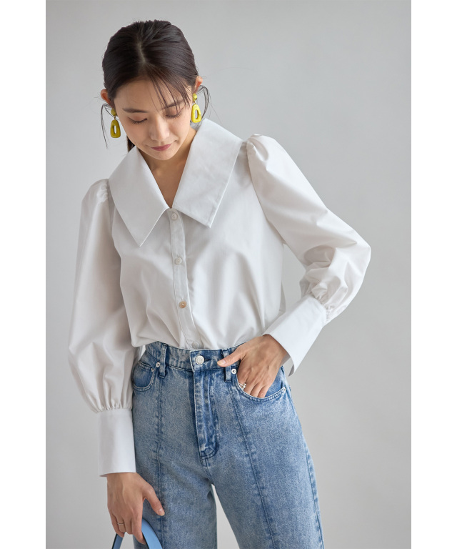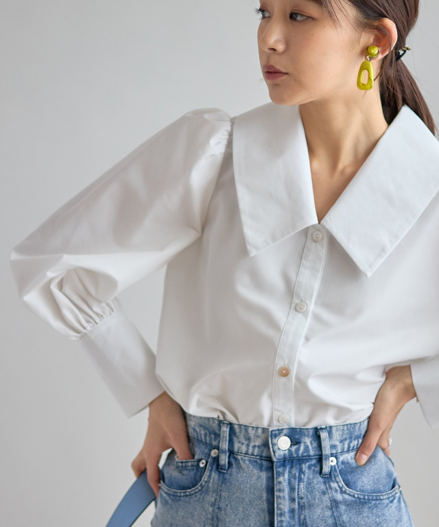 | 商品説明 | ≪ Attention:販売日、在庫状況はWEBと店舗と異なります。予めご了承くださいませ。≫ ON・OFF着回せるロングカラーシャツブラウス ボリュームのある袖のデザインとロングカフスがお洒落見えと華奢見えを叶えてくれるブラウス。 ハイウエストのボトムにタックインして、スッキリさせることでシルエットをより美しく魅せてくれる1枚。 |