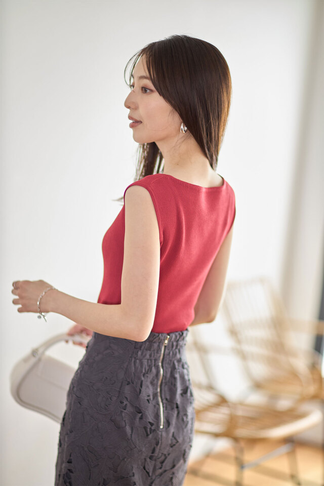 | 商品説明 | : | デコルテをすっきり見せながら大人の女性らしさを演出してくれるスクエアリブノースリーブニット