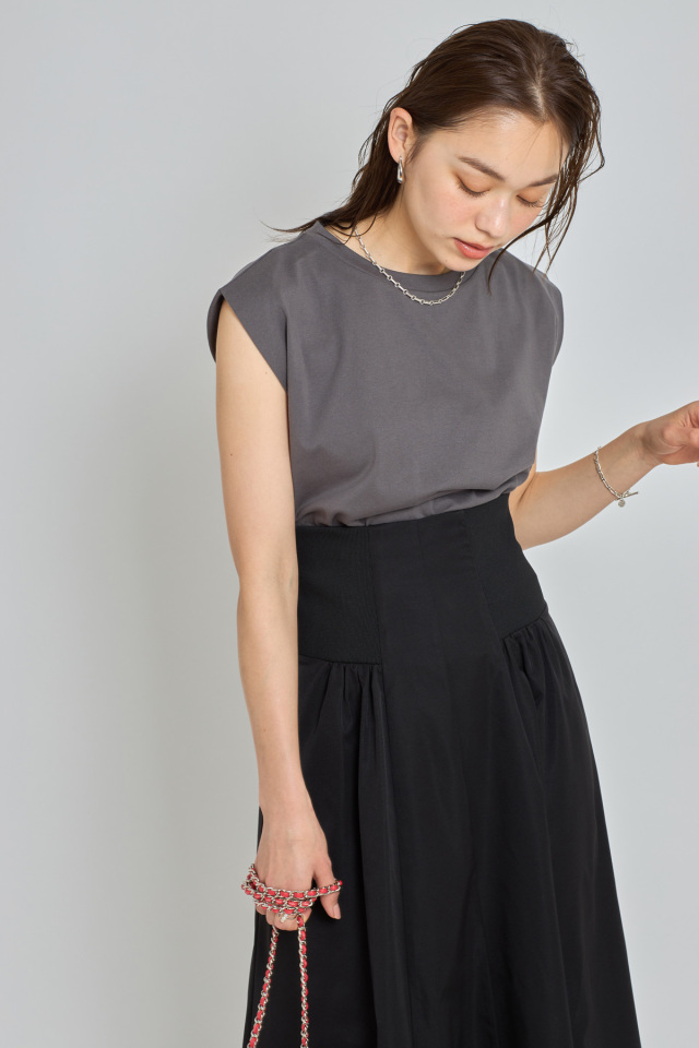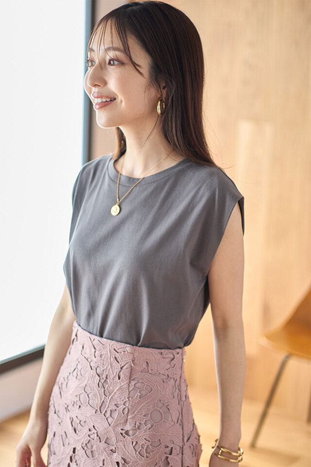 シンプルな無地のデザインでスタイリングに取り入れやすいカットソーは汗じみ防止加工を施した、 色違いで欲しい高コスパなアイテム。 |