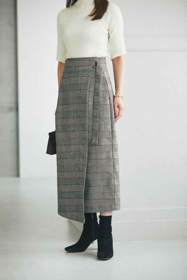 | 商品説明 | ≪ Attention:販売日、在庫状況はWEBと店舗と異なります。予めご了承くださいませ。≫ ハイウエストデザインで美シルエットが叶う、サイドポケットラップスカート フロント部分に生地を重ね、ラップ風に仕上げたスカートは中にボタンを施し、 動いてもはだけることなくシルエットキープしてくれるアイテム。 シーズンムード漂う素材感と、ブーツにも合う絶妙な丈感が大人っぽくキマる1着。 |