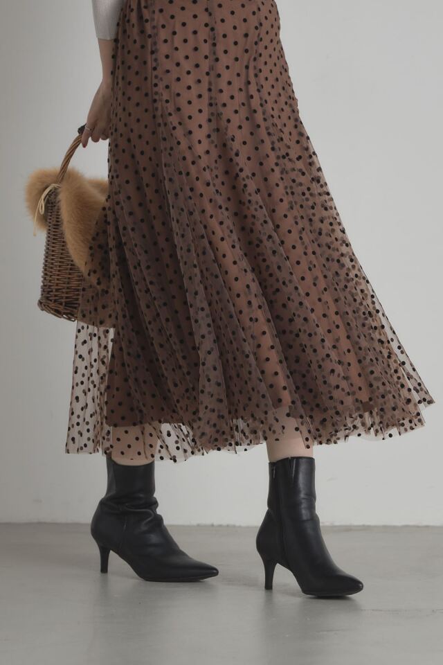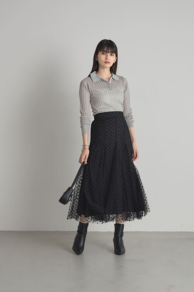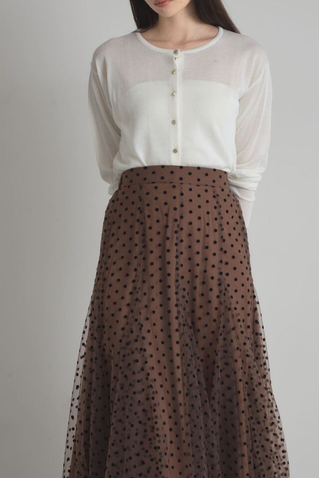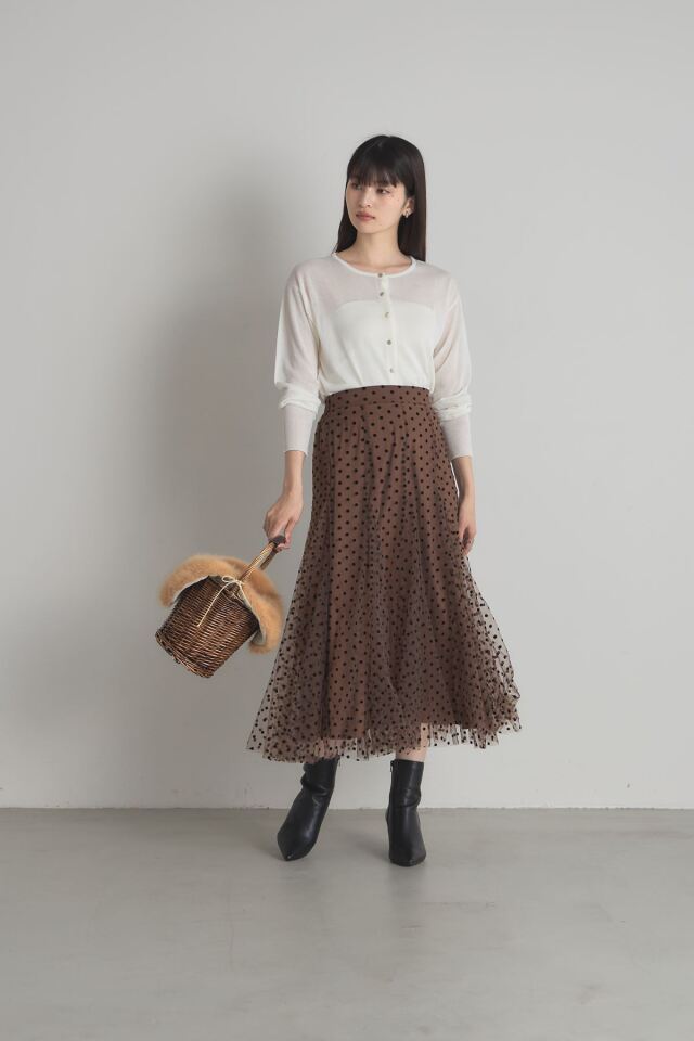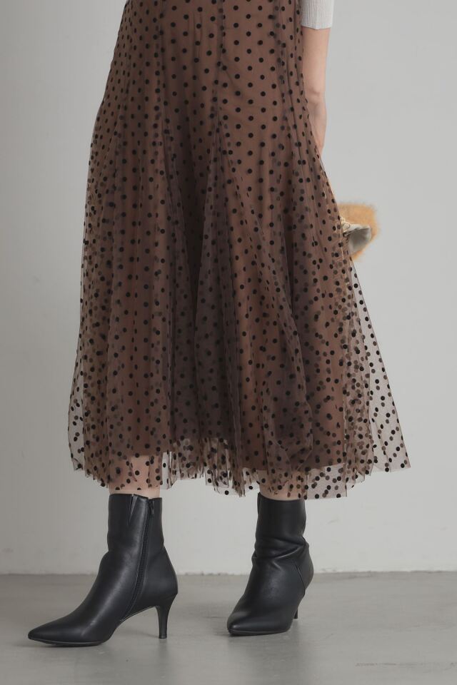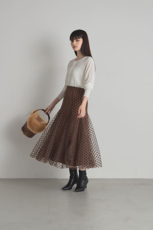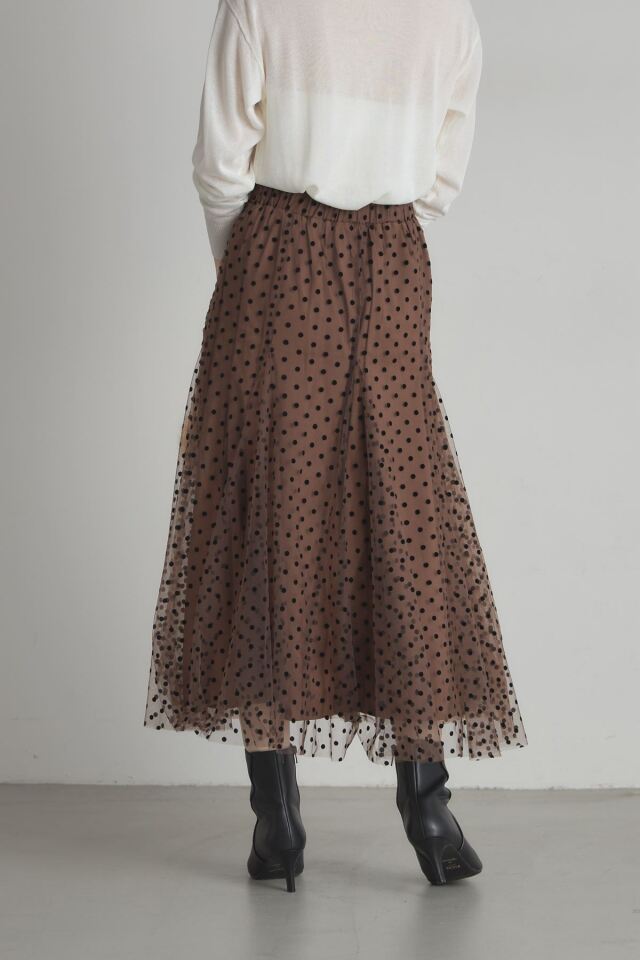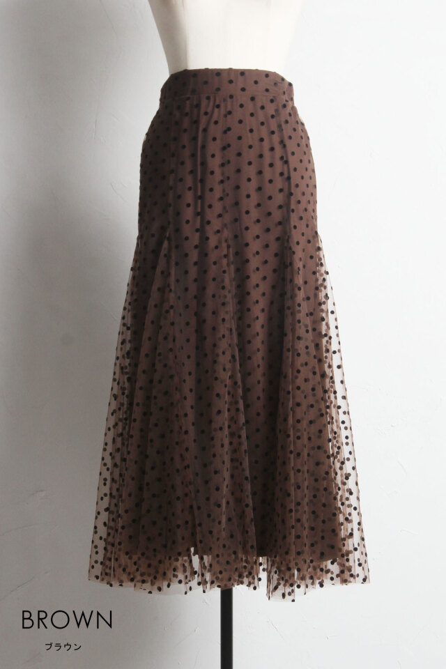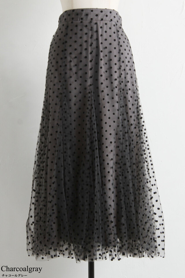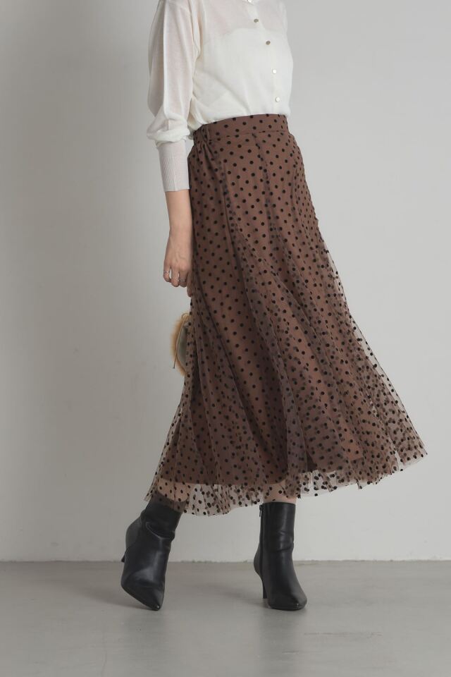 | 商品説明 | : | 動くたびに揺れるふんわりとしたシルエットがエレガントなフロッキードットチュールスカート 立体感のあるフロッキープリントがシーズンムード漂うドットスカート。落ち着いたベースカラーと繊細なチュールデザインが、オケージョンアイテムとしても着回せる優秀アイテム! |