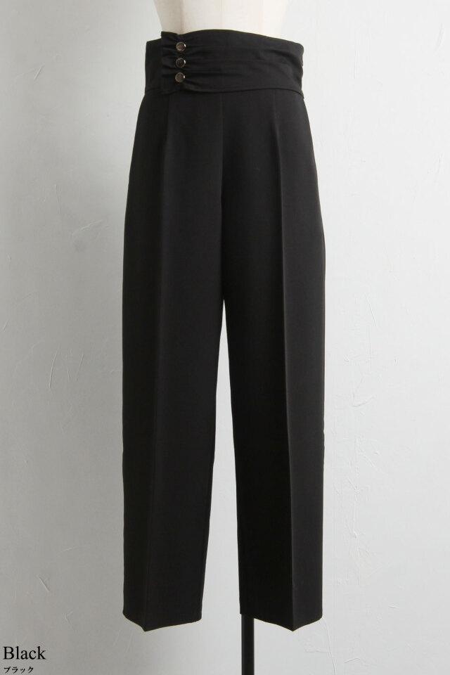 | 商品説明 | : | 大人のきれいめスタイルに1本はもっておきたい、ボタンデザインワイドパンツ 裾に向かってすとんと落ちるセンタープレスとボディラインを拾いすぎないシルエットでON・OFF問わず着回せるスラックス。ウエストイン or クロップドトップスと合わせてウエストのデザインをアピール。 |
