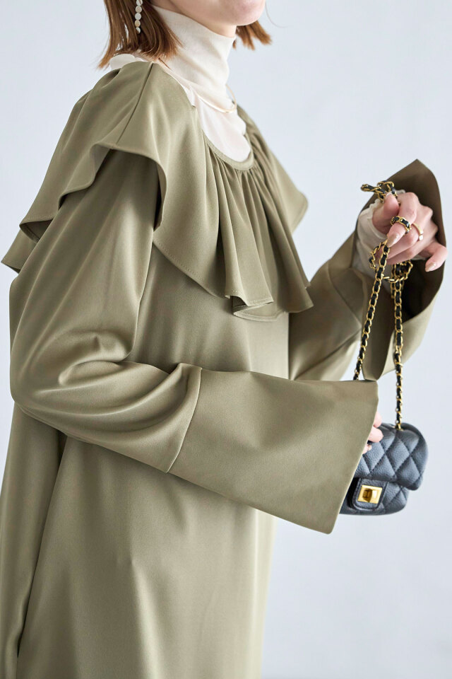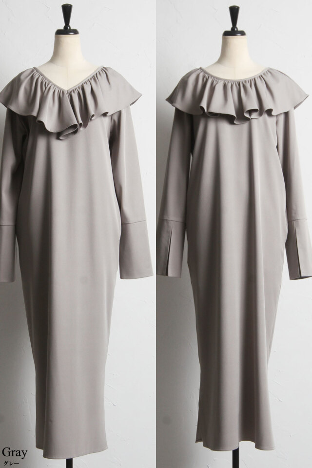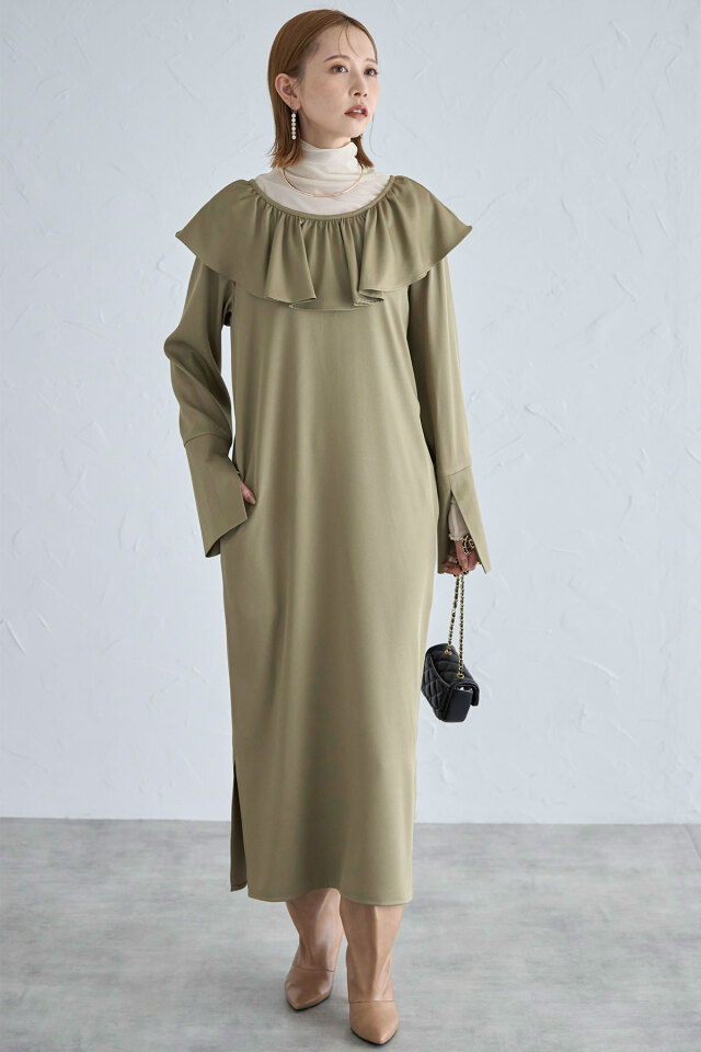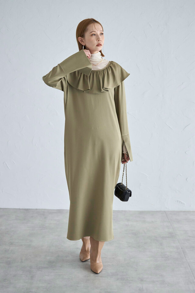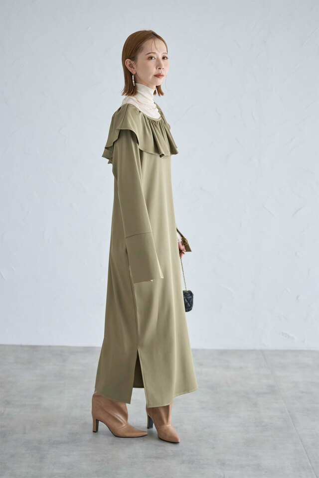 | 商品説明 | : | 前後2WAY着用可!ホリデーシーズンに着たい!フリルが華やかなラッフルワンピース 前後2WAYで着用だから、お好みに合わせてVネックとUネックを使い分けられるワンピース。 胸元のフリルと袖のデザインが差をつける、デザイン性のあるワンピースです! インナーにタートルを入れたり、カーデを合わせて襟をだしたり、様々な着方でお楽しみいただけます。 |
