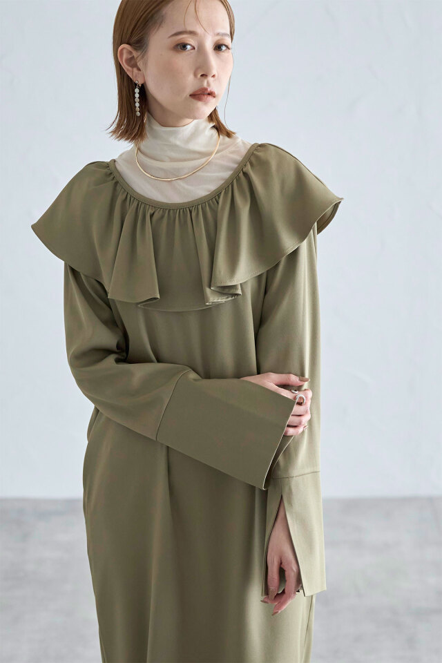 | 商品説明 | ≪ Attention:販売日、在庫状況はWEBと店舗と異なります。予めご了承くださいませ。≫ 前後2WAY着用可!ホリデーシーズンに着たい!フリルが華やかなラッフルワンピース 前後2WAYで着用だから、お好みに合わせてVネックとUネックを使い分けられるワンピース。 胸元のフリルと袖のデザインが差をつける、デザイン性のあるワンピースです! インナーにタートルを入れたり、カーデを合わせて襟をだしたり、様々な着方でお楽しみいただけます。 |
