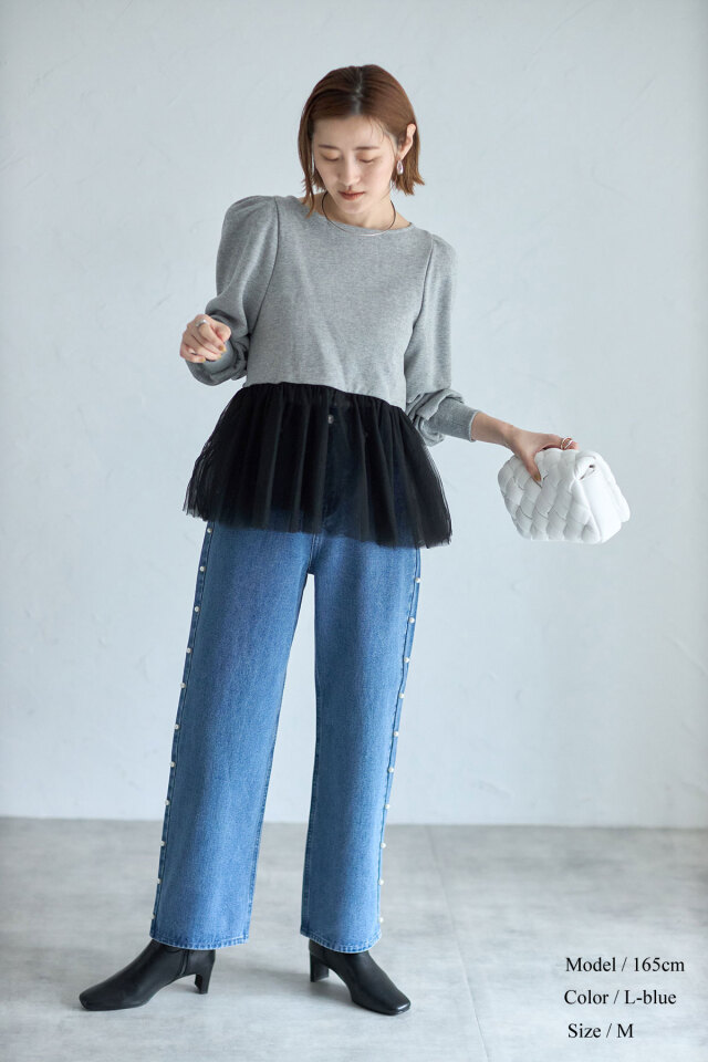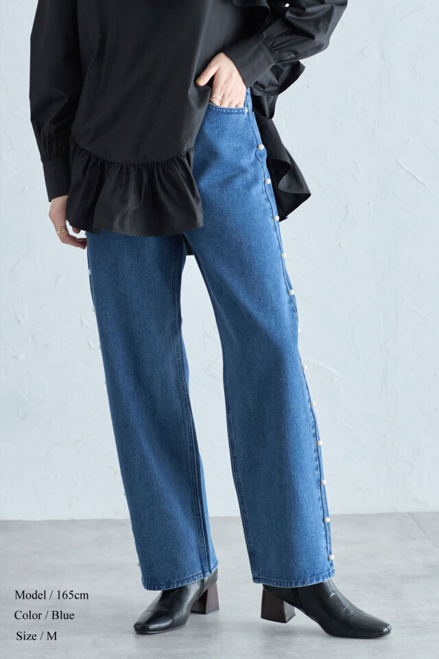 | 商品説明 | : | サイドパールがデニムコーデをアップデートしてくれる、サイドパールストレートデニム ぱっと目を惹くサイドパールが高見えを叶える、ストレートデニムパンツ。 パールのワンポイントがある事でカジュアルになりすぎず、きれいめコーデにも着回せる1枚です! |