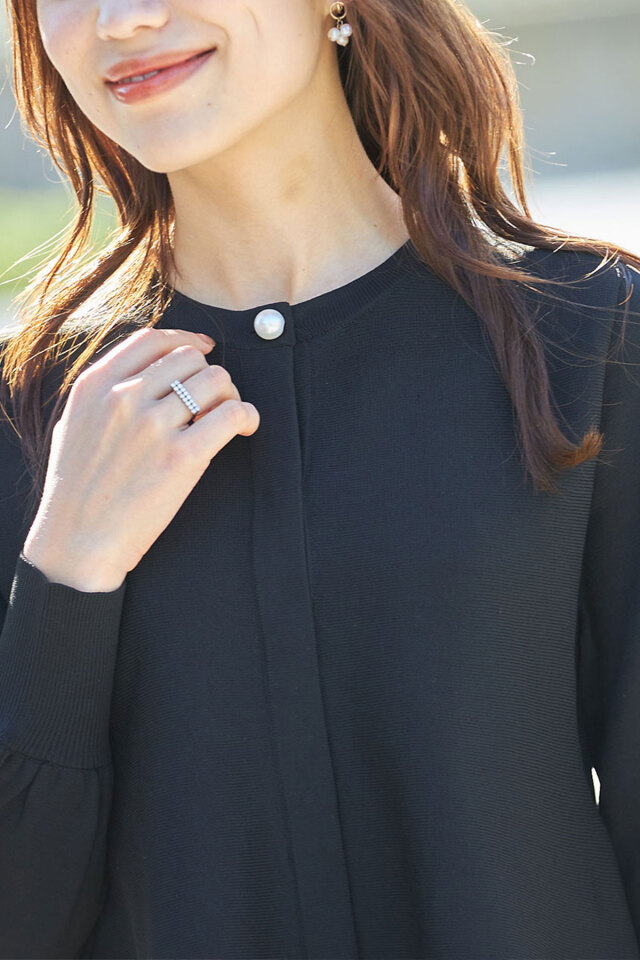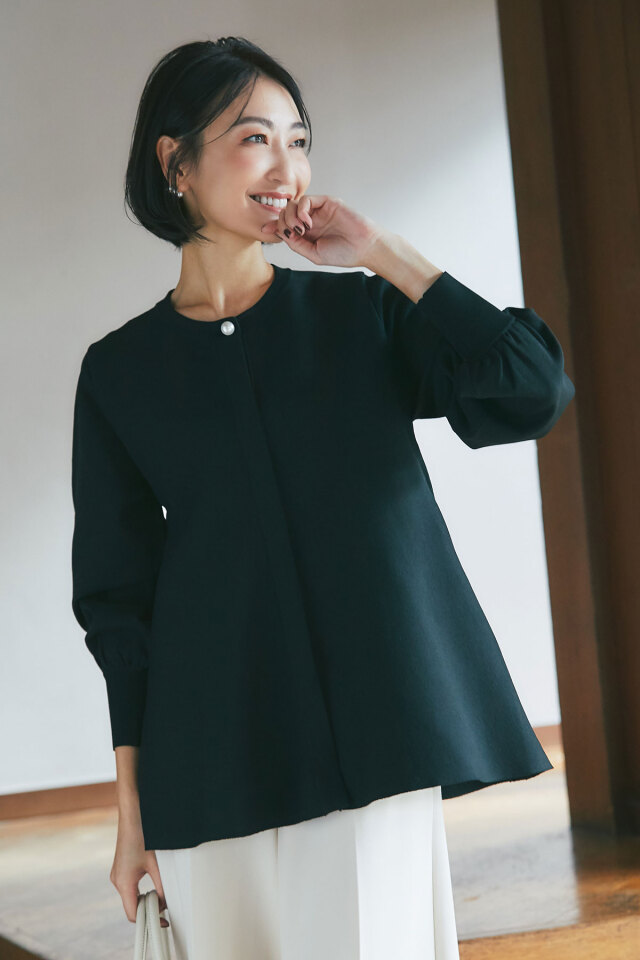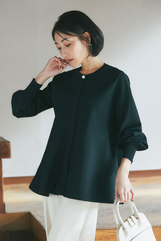 ブラック購入。生地は薄いので、こちらをメインにする場合は中にしっかり着込もうとおもいます。パールボタンが取れそうで心配だったので、自分でシッカリ縫い直しました。