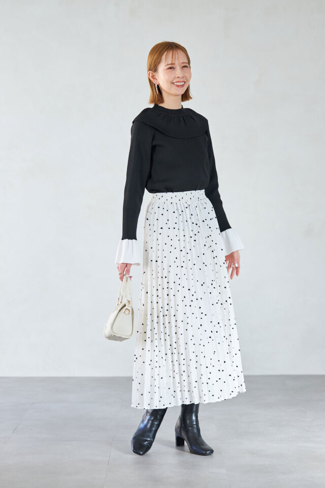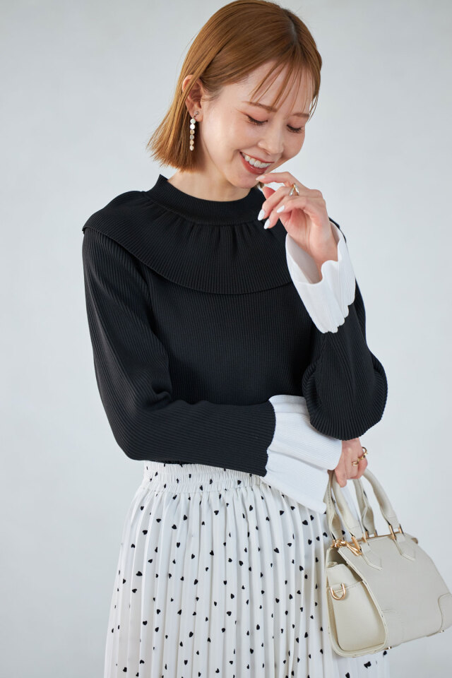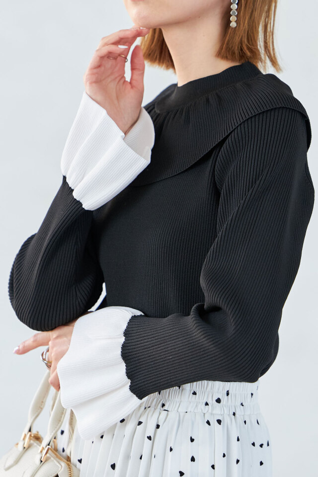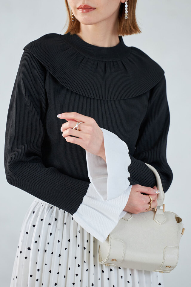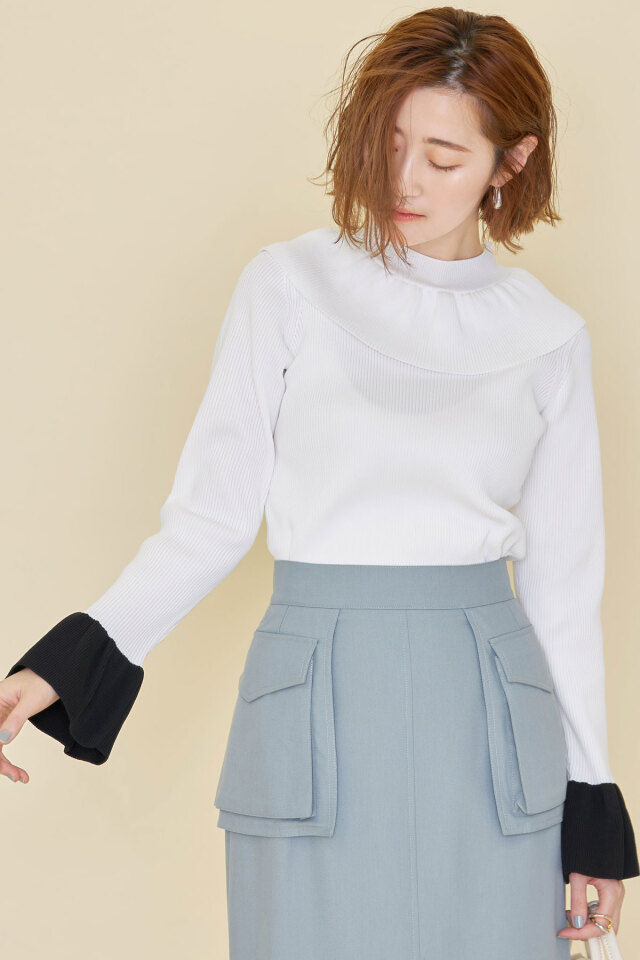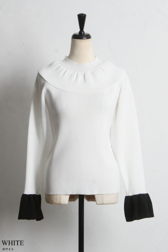 | 商品説明 | : | 1枚で着映えする襟と袖のフリルデザインがポイント!フリルネックベルスリーブニットPO ぱっと目を惹くフリルデザインが着映えする、ベルスリーブニット。 襟元と袖に存在感のあるフリルが施されながら、ボリュームが出すぎない素材感だから、 スカートでもパンツでも、様々なコーデに合わせやすいアイテムです! ホワイトとブラックは、袖が配色になっているのもポイント! |