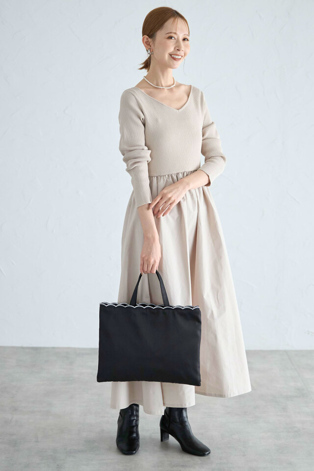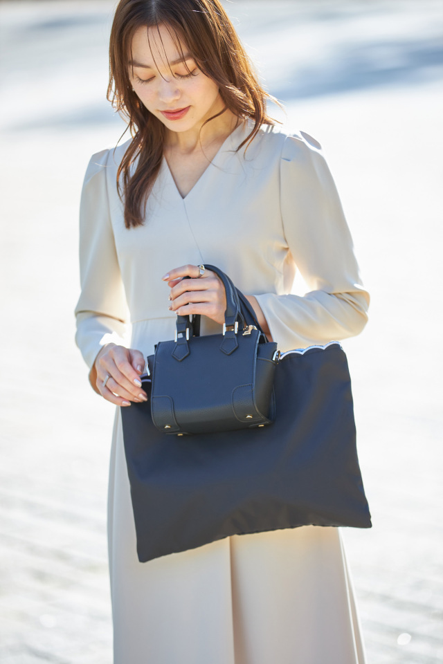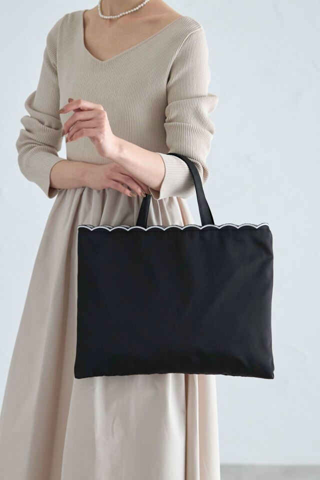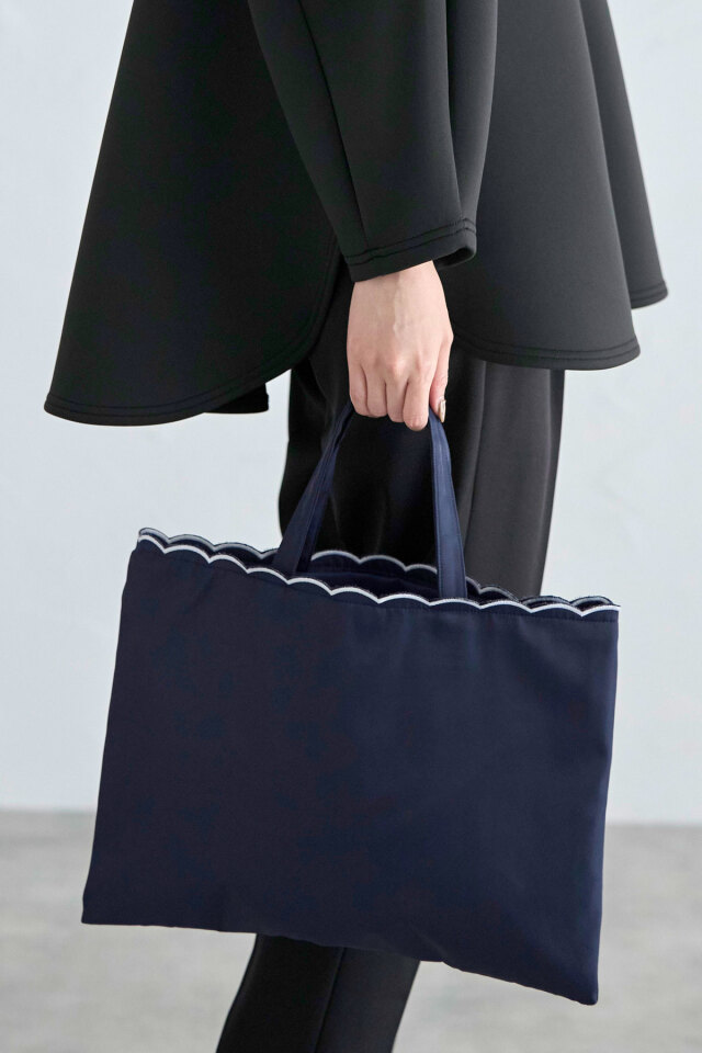 | 商品説明 | : | 【&.NOSTALGIA navy】A4サイズ収納可!学校行事や習い事、お仕事のサブバッグにも!スカラップトートバッグ セミオケシーンからデイリー使いまで、様々なシーンで活躍する【&.NOSTALGIA navy】ラインからトートバッグが登場! A4サイズが横にすっぽり入るサイズ感ながら、軽量な素材を使用し軽い使い心地を実現。 働く女性やママたちのニーズに答える、こだわりのトートバッグです。 コーディネートを邪魔しない、さりげない持ち手のスカラップデザインもポイント! シンプルすぎず女性らしさも忘れないトートバッグに仕上げました。 |