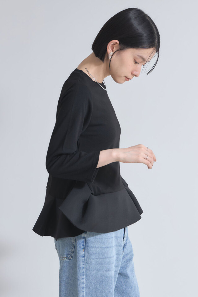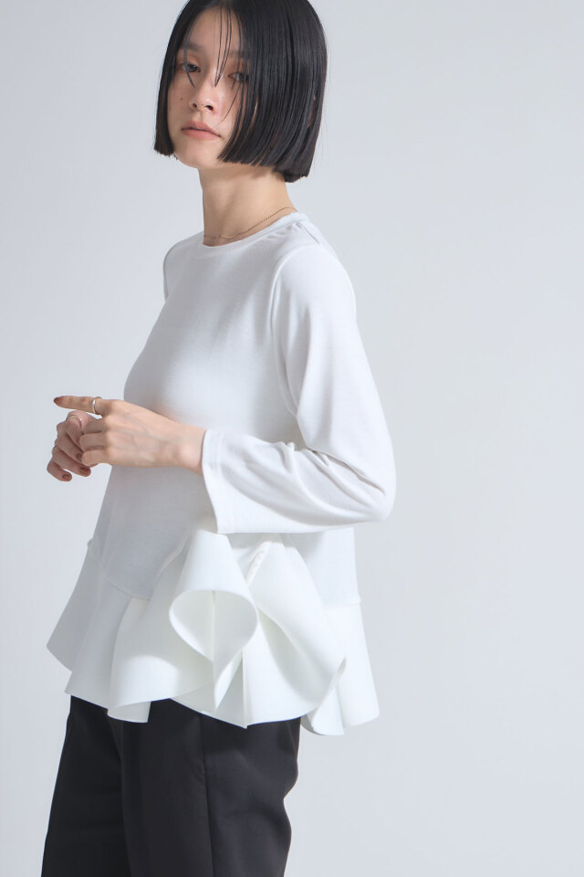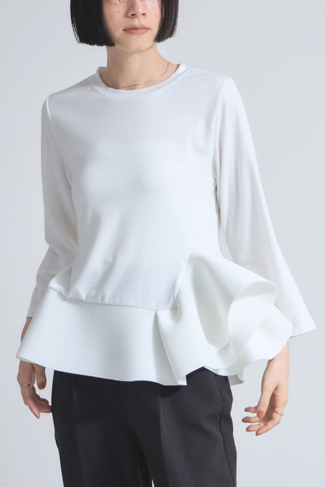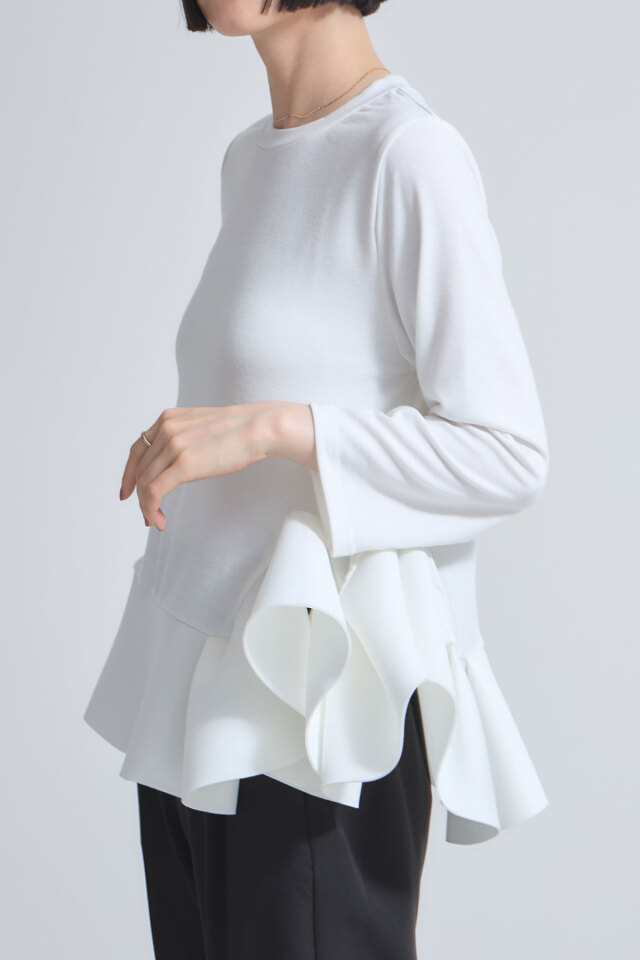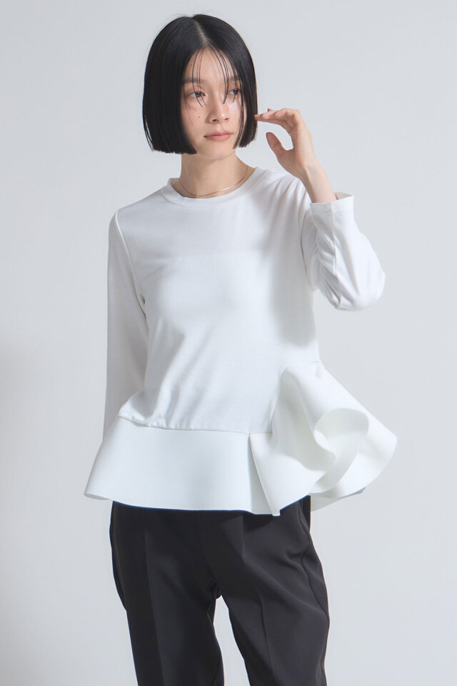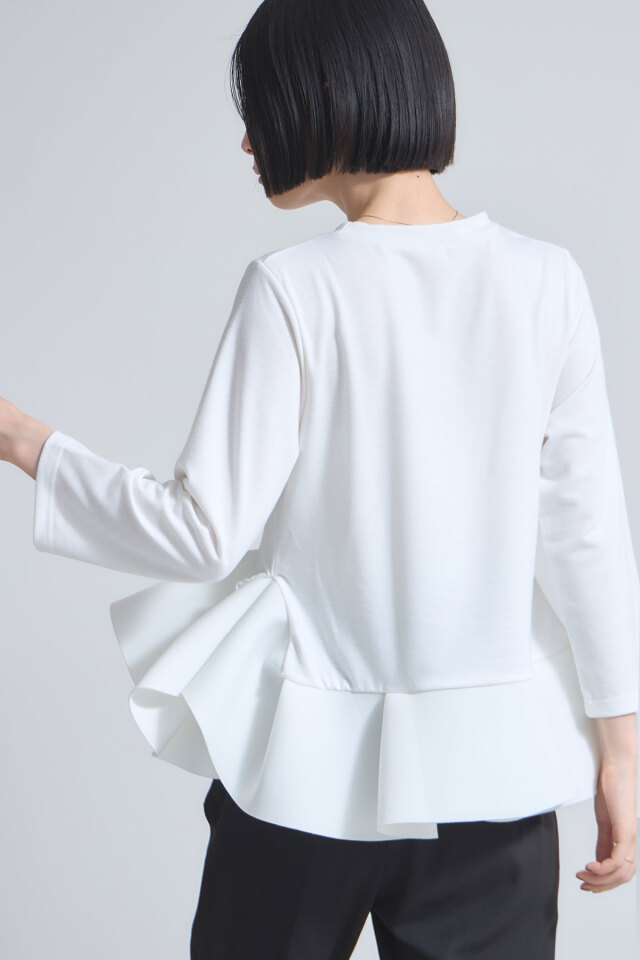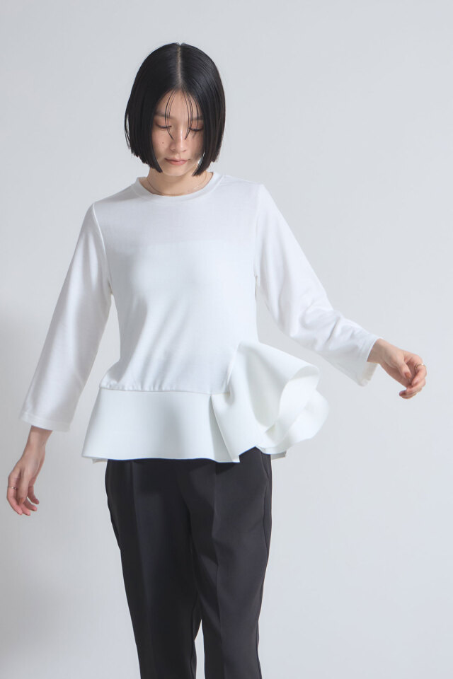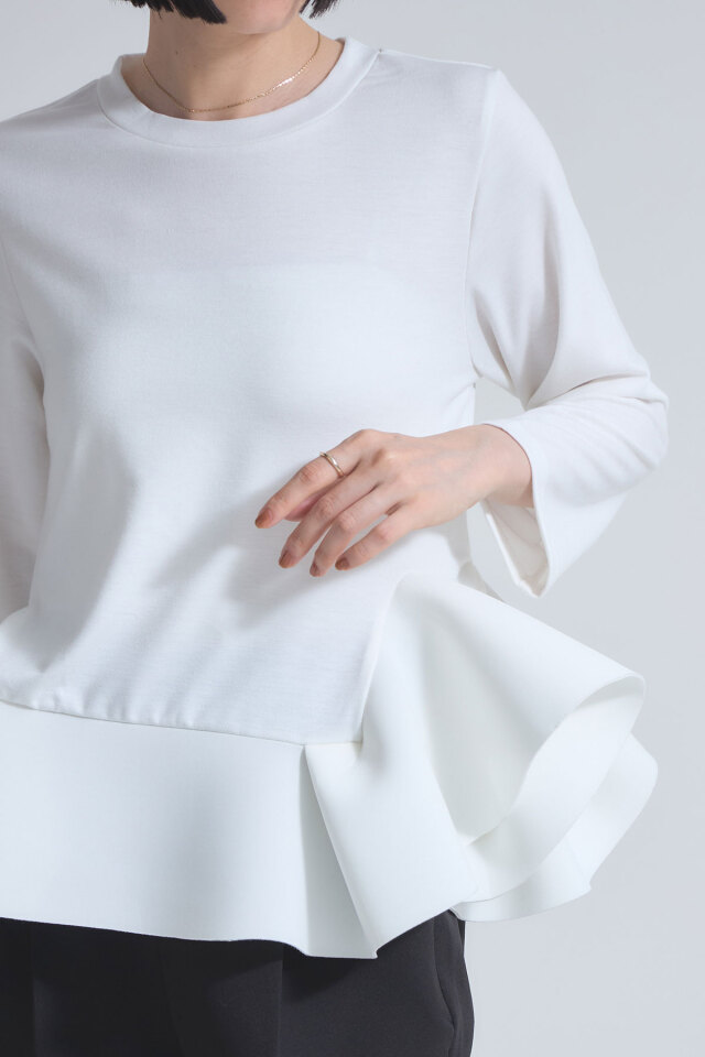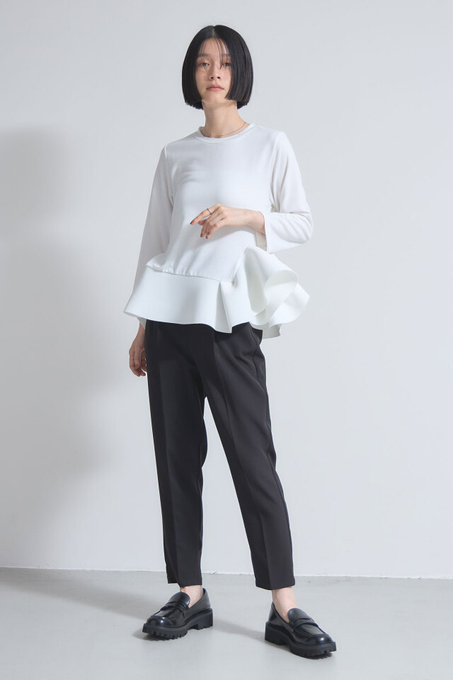 | 素材 | 本体/ポリエステル60% レーヨン35% ポリウレタン5% 別布/ポリエステル97% ポリウレタン3% (中国製・伸縮性なし・透け感ホワイトのみややあり・裏地なし) |