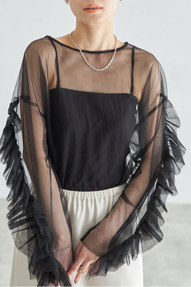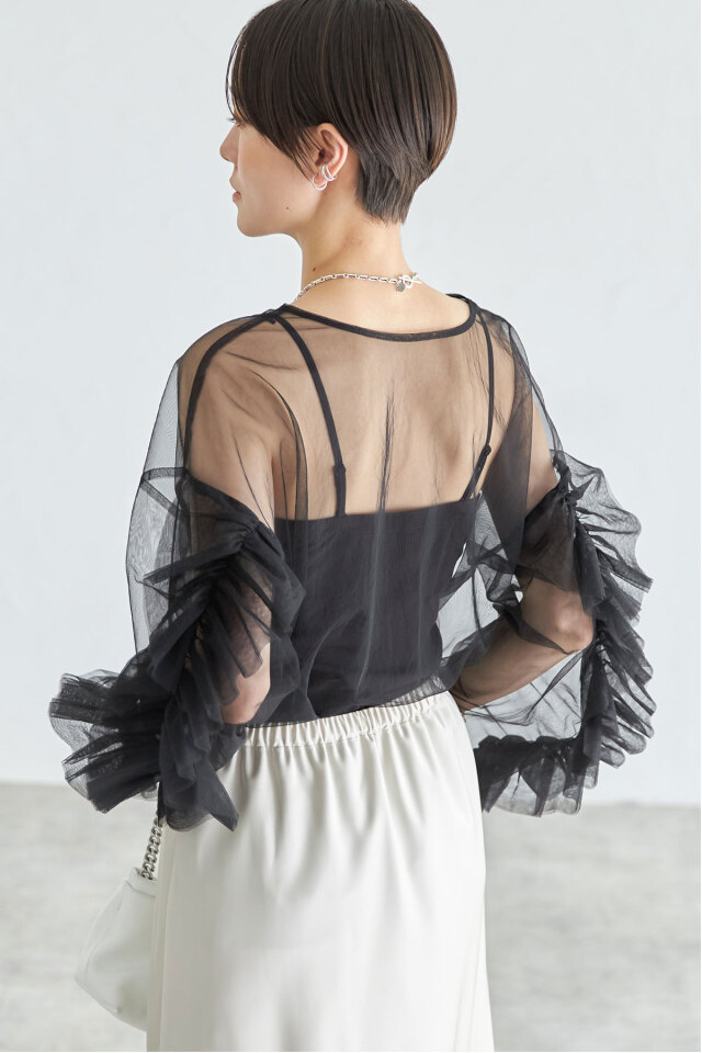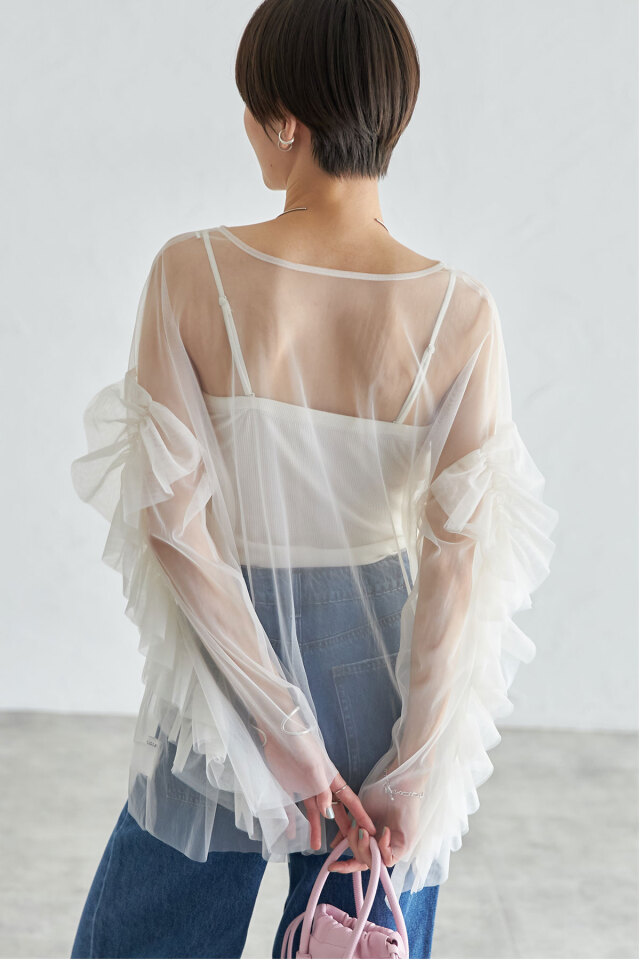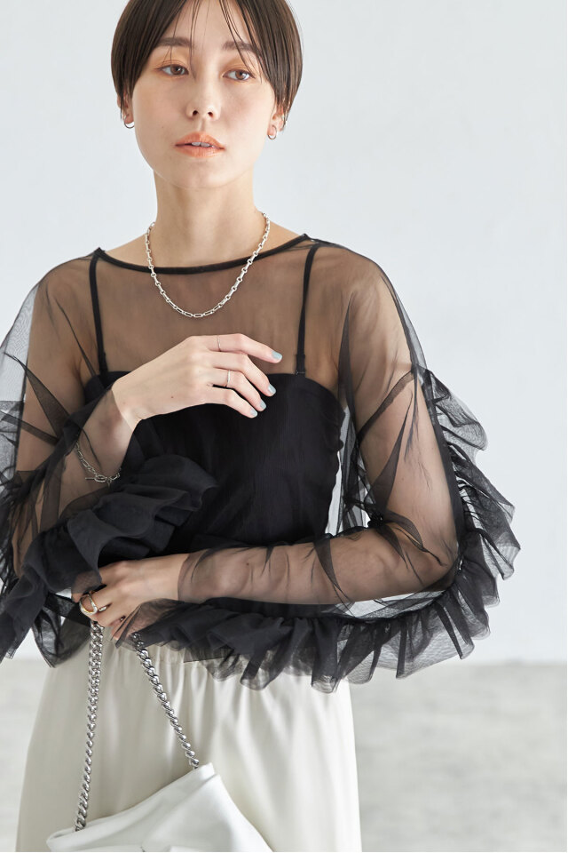 | 商品説明 | ≪ Attention:販売日、在庫状況はWEBと店舗と異なります。予めご了承くださいませ。≫ シーズンムード漂う透け感がポイント、フリルチュールシアーブラウス 春トレンドのシアー感と、袖にたっぷりのフリルを取り入れた着映えブラウス。 透け感がある事でコーデに軽やかさをプラスし、女性らしいスタイリングに仕上げてくれます◎ |