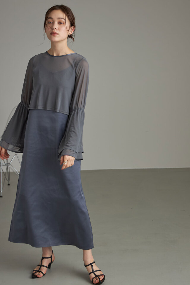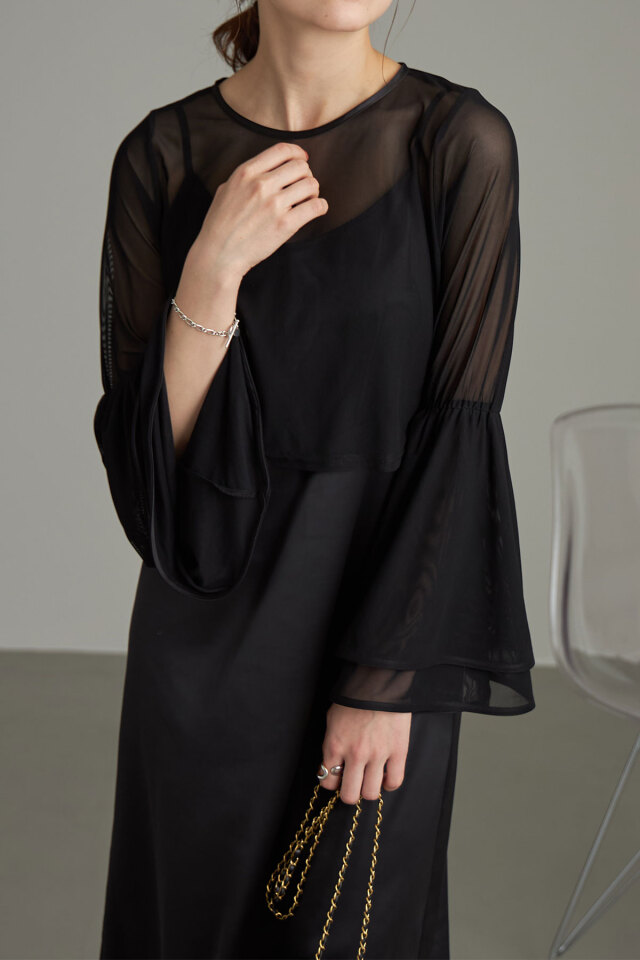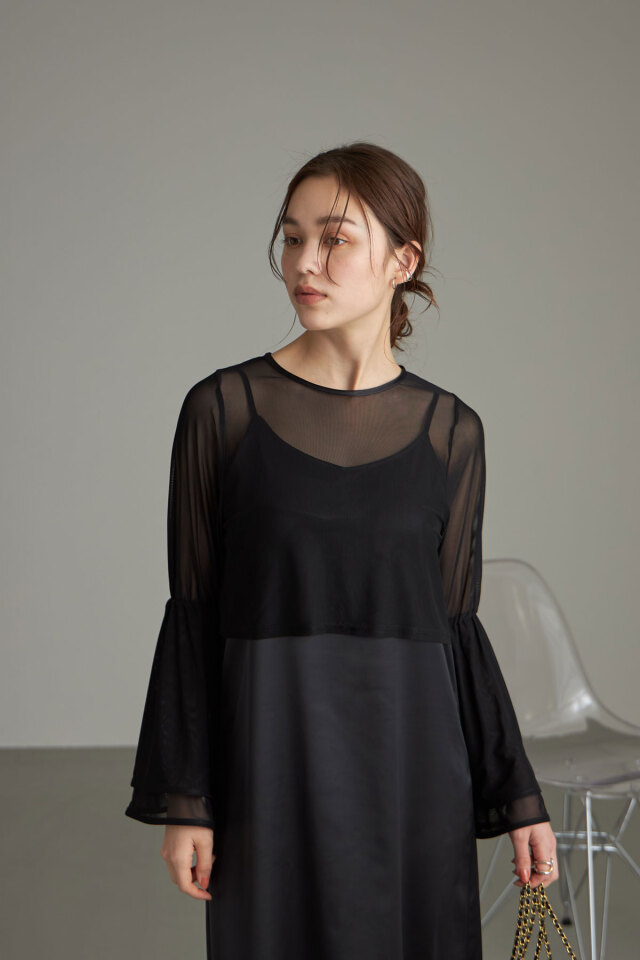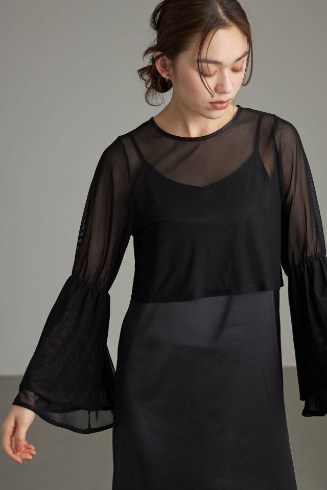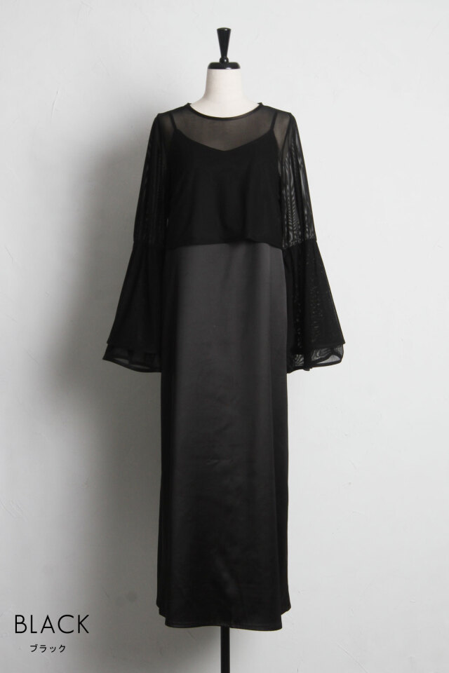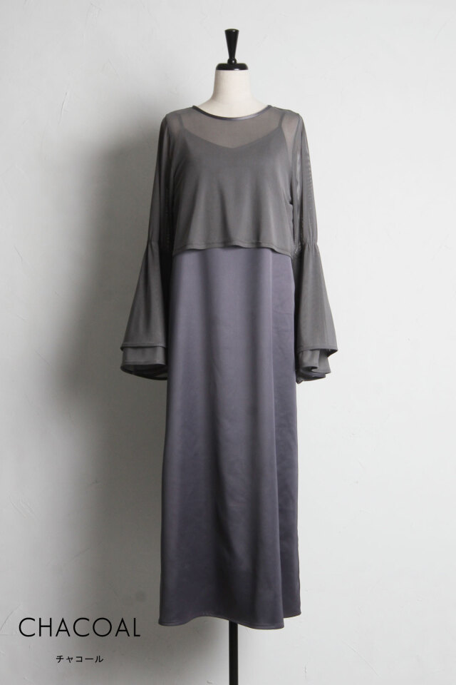 ワンピース/ポリエステル100% (中国製・伸縮性なし・透け感トップスのみあり・裏地あり) |